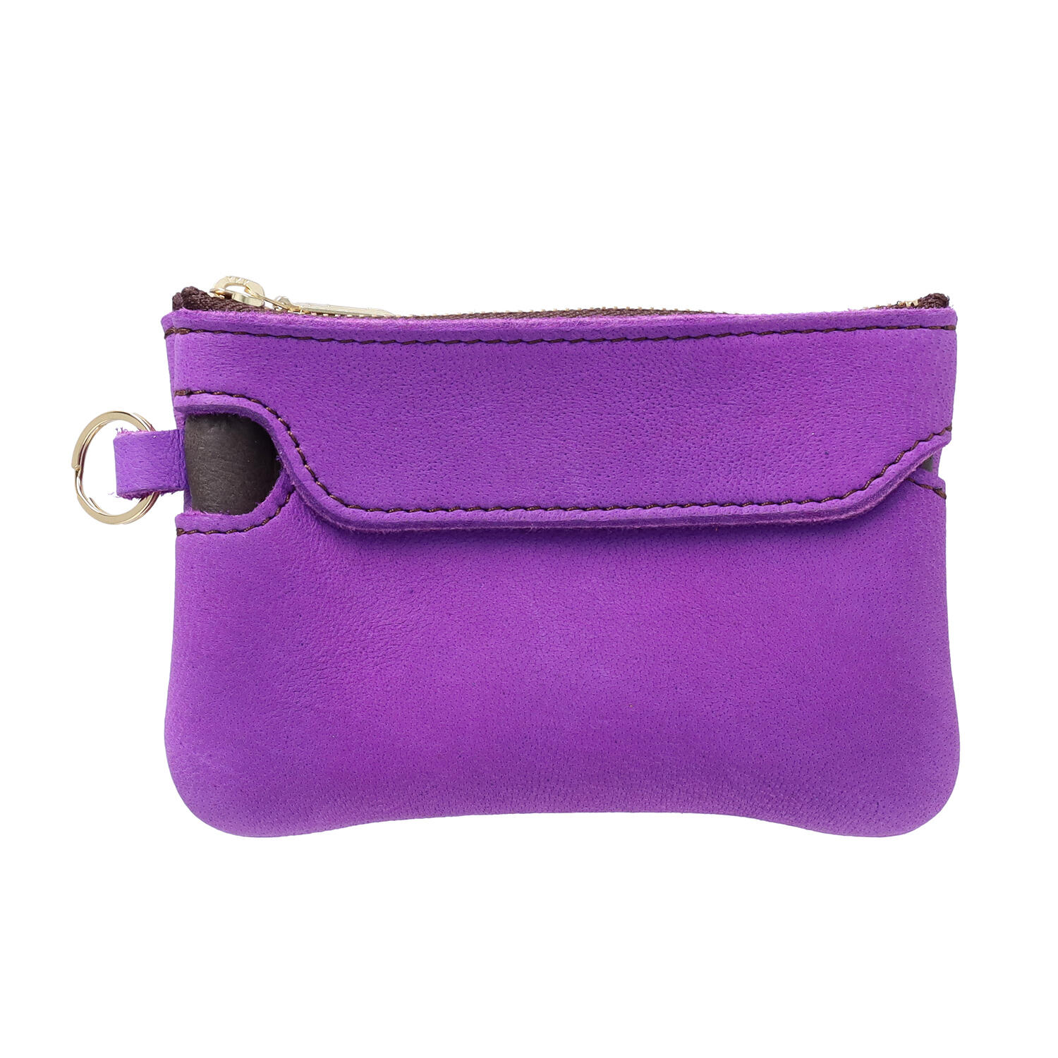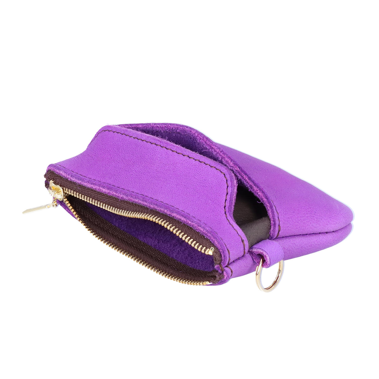 使い続けると色は深くなり、ツヤが出てくる個性ある素材。ふっくらとした手触りの「エルク革(ヘラジカ革)」を使ったミニポーチです。外側のポケット口にはキーリングがついており、通常サイズのキーをつけることができます。大きなスマートキーはポーチの中へ入れることができ、キーケースとして使うほか、紙幣やコインをまとめてミニ財布としても使うことができるマルチケースです。