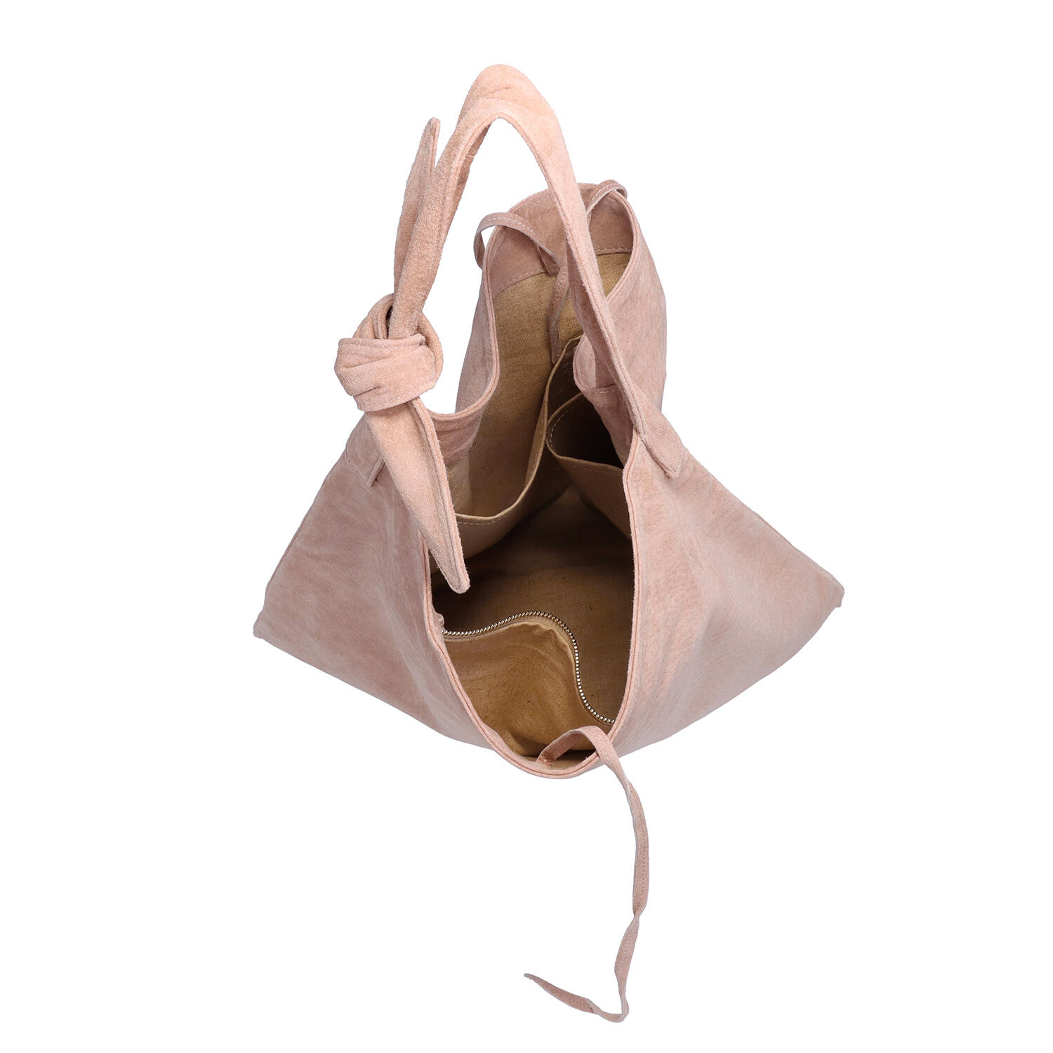 独自で開発した「手洗いができるピッグスエード」を使い、シャープな三角形のシルエットのショルダーバッグ。ショルダーストラップの長さを調整することによって、バランスを変えることができます。内側にはフリーポケットとファスナー付きポケットがあり、小さな小物も整理して入れることができます。裏地もコットンと麻の混合素材で、外側の革と同じくナチュラルな風合いを帯びてきます。
