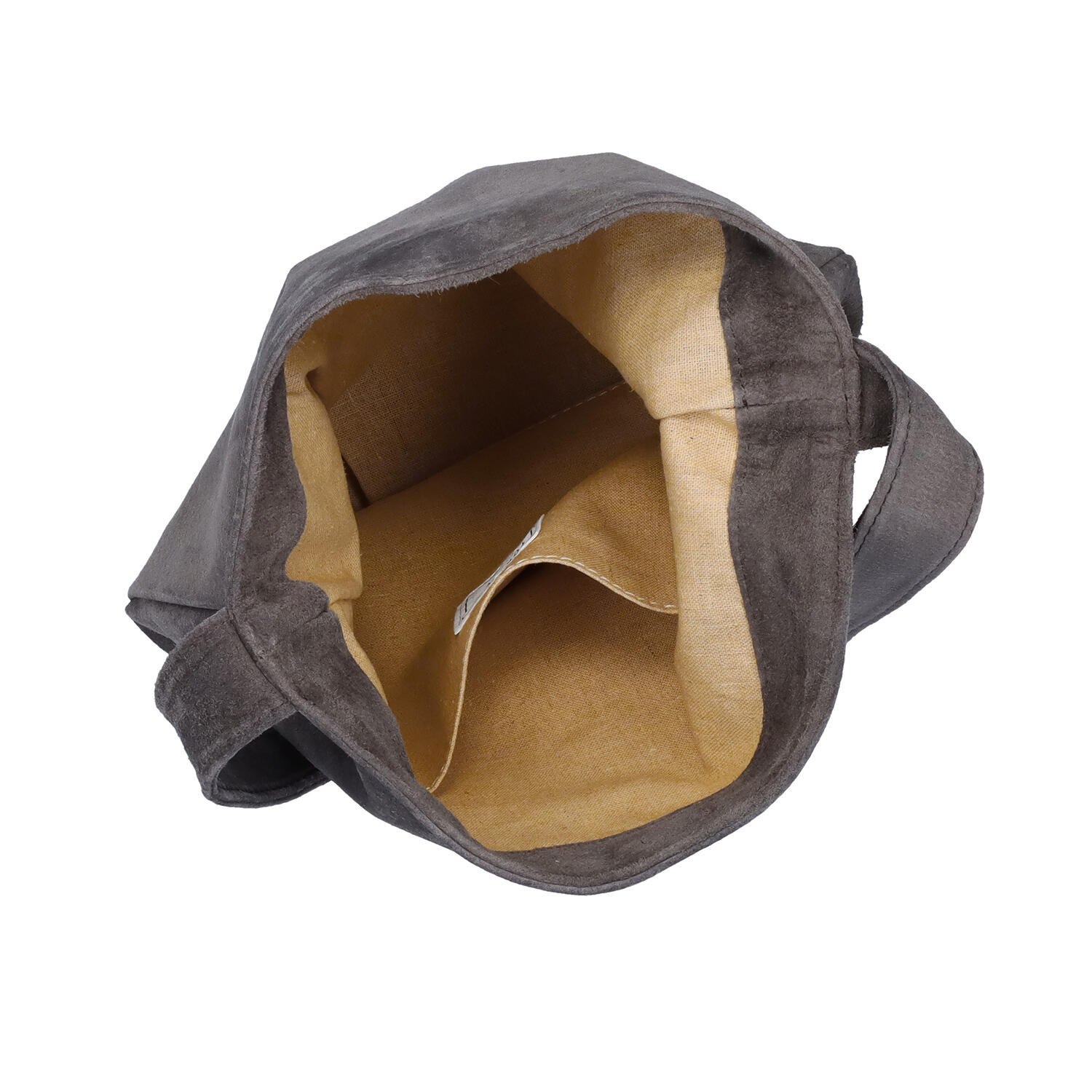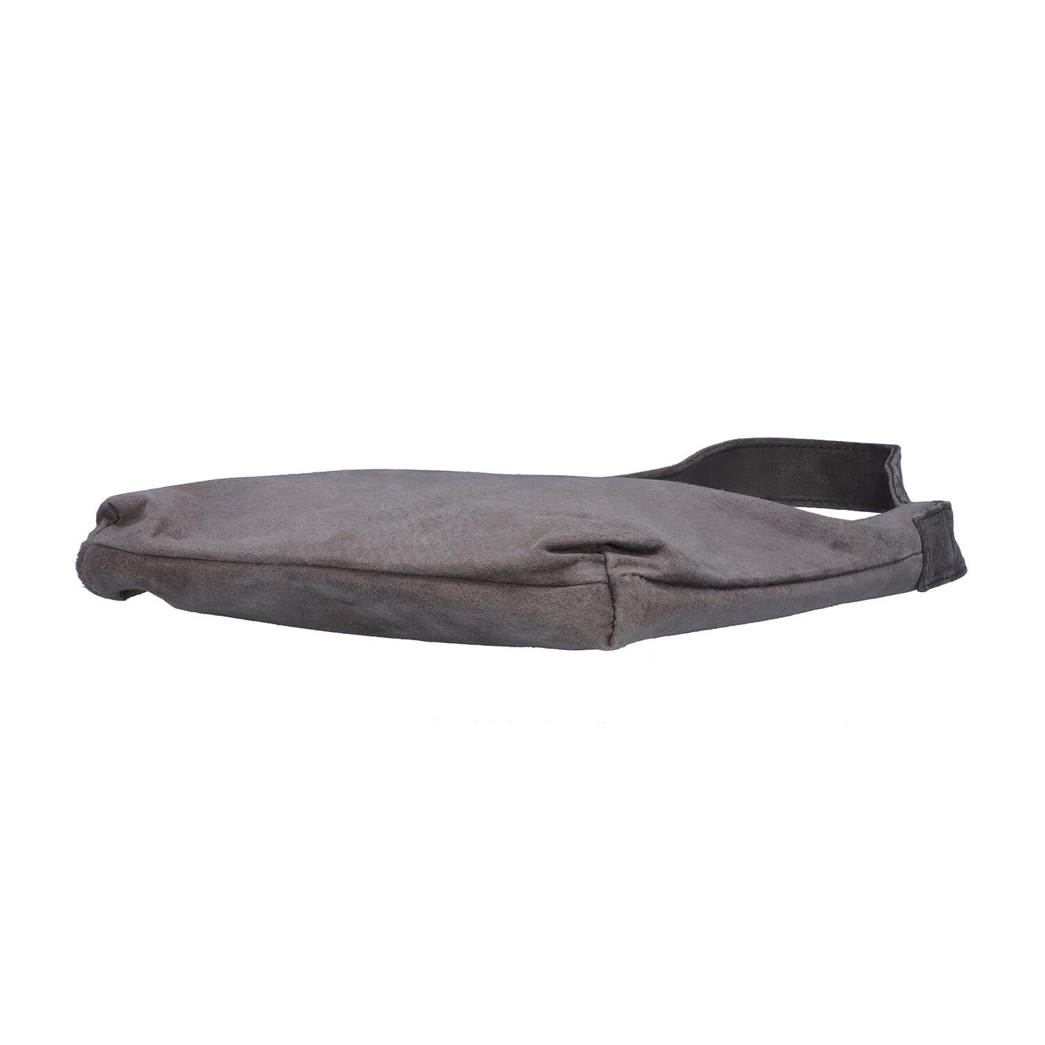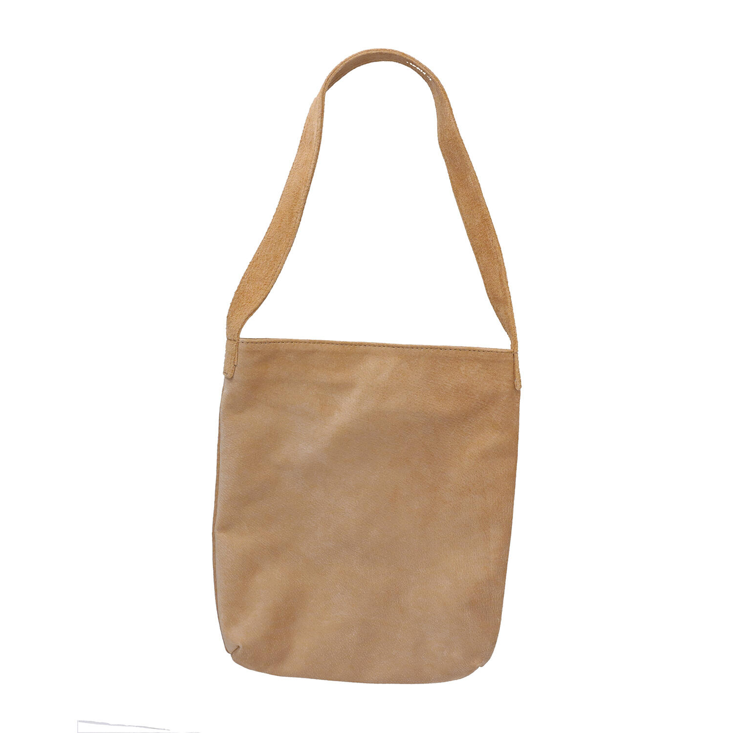 長方形にショルダーストラップを付けた、シンプルな縦型サコッシュ。特殊な油と染料を使ってなめしと染めを施し「手洗いができる革」として仕上げたピッグスエードを使っています。厚手のアウターを着ても肩にかけることができるストラップの長さ、手が入れやすく深すぎない縦横バランスは、肩にかけても手に持ってもよいサイズ感です。