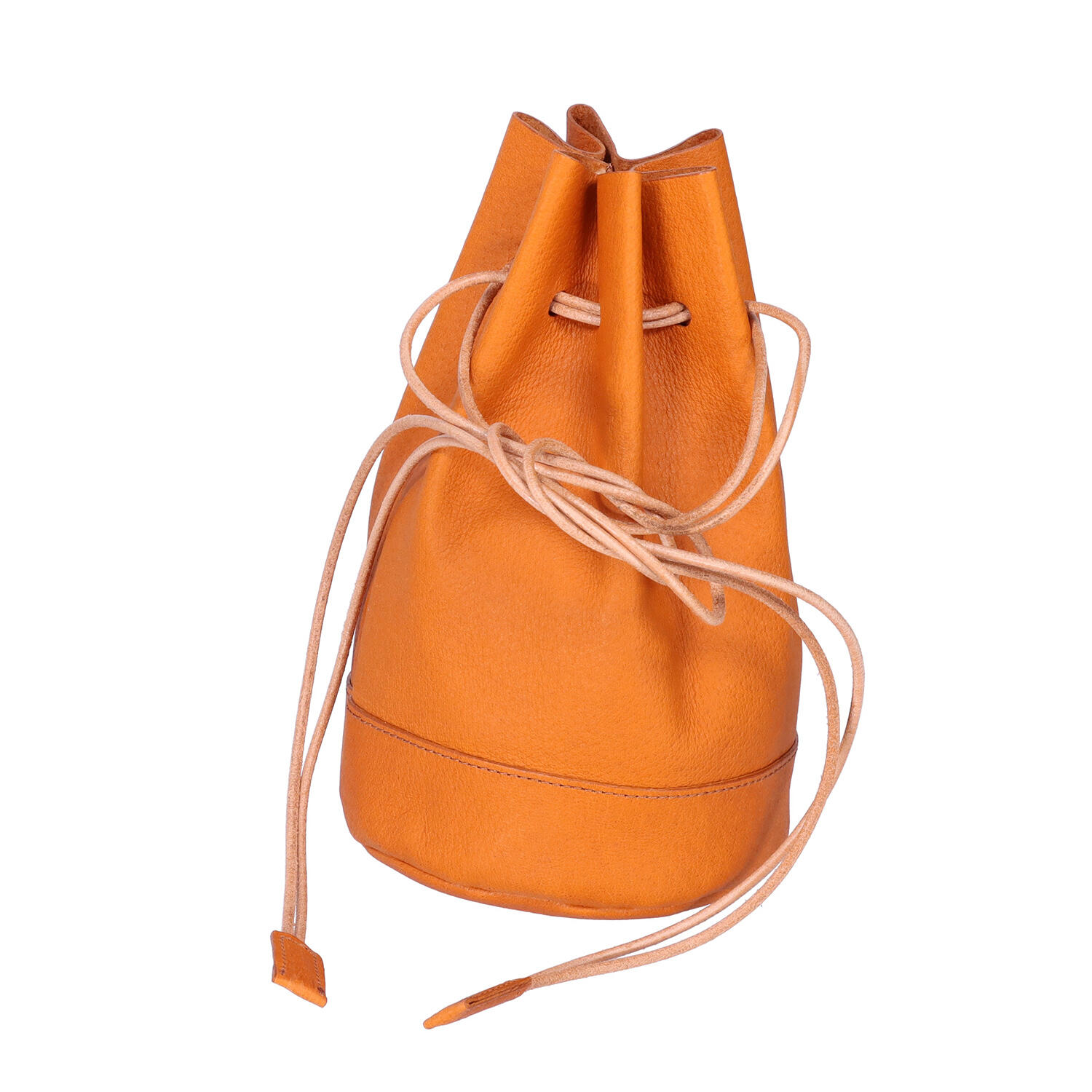 手に提げて使用する灯り、「ランタン」に着想を得てデザインされたミニバッグ。四辺からレザーコードをまとめて短く持つほか、長く伸ばして斜め掛けにして使うこともできます。底部は丸く切り替えて、型崩れしにくい仕様。。ピッグスキンを植物タンニンなめしで仕上げたナチュラルな風合いとエイジングが、いつものコーディネートをやわらかくリラックスした印象にまとめてくれます。
