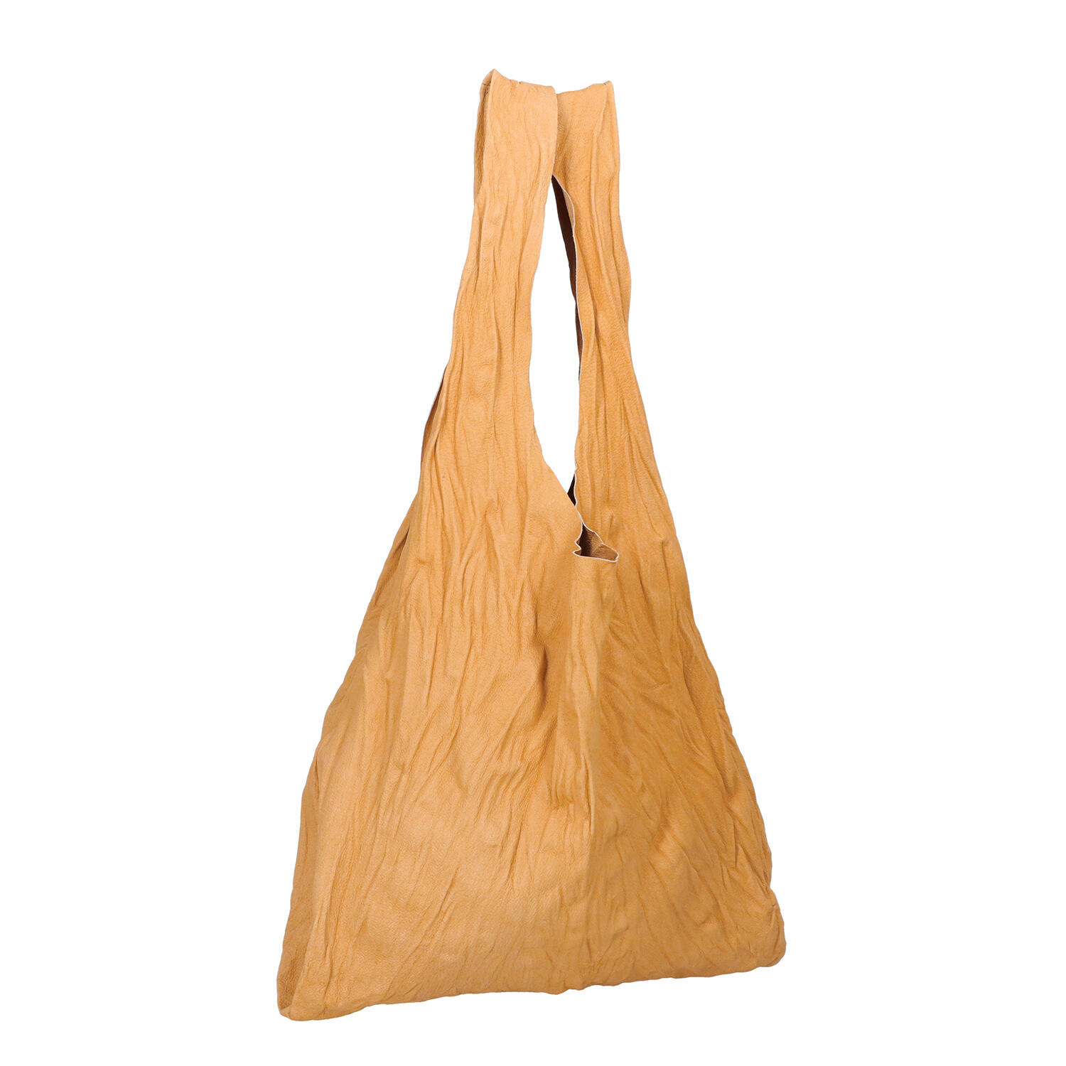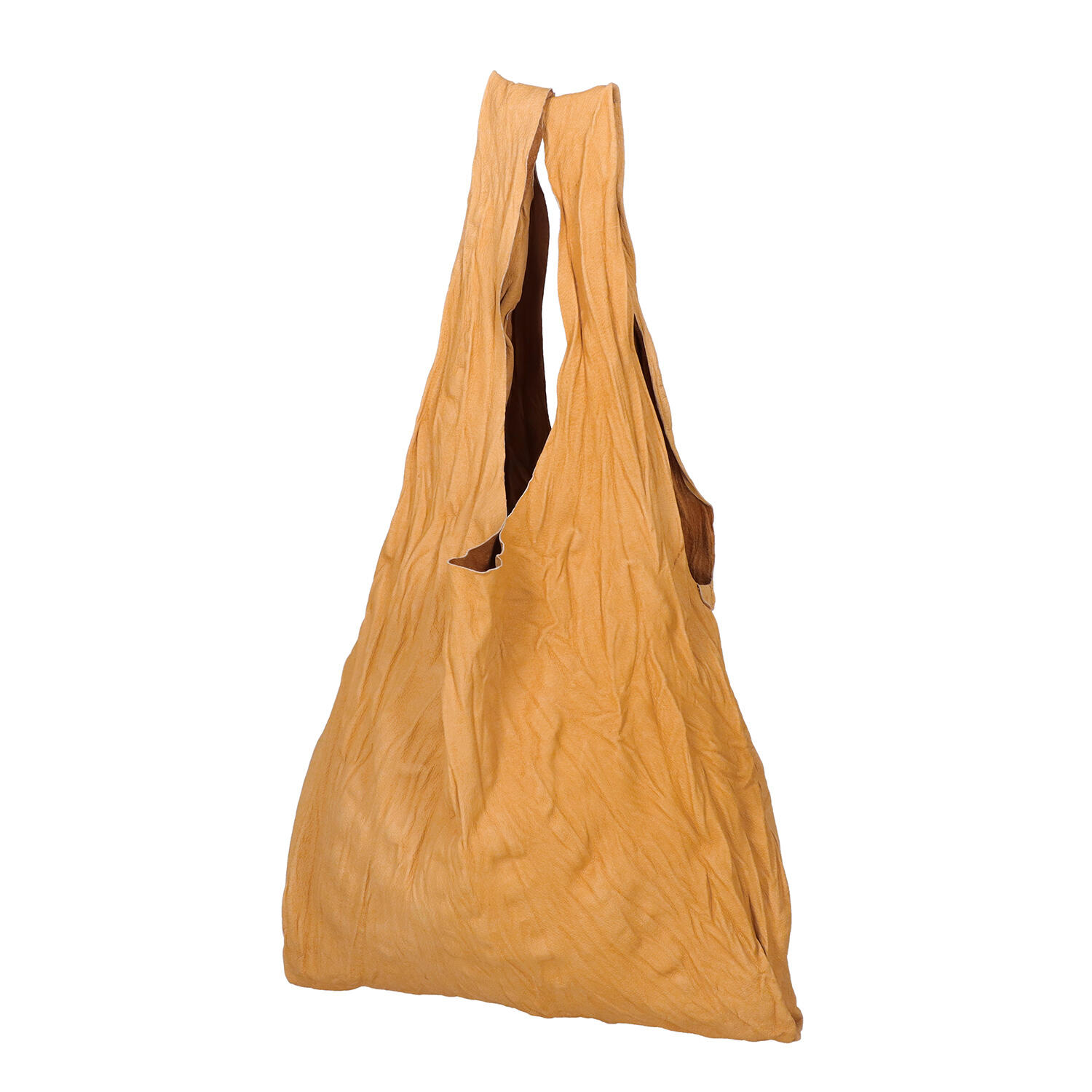 東京でなめされたピッグスキンに、撥水加工を施したショッパー型バッグ。折り畳んでもしわが目立ちにくい加工が施されており、デイリーの持ち歩き用としても、また旅行時のサブバッグとしても重宝しそう。持ち手の部分を結んで、ノットを握るように持つのもお洒落。内側にはポケットがひとつと、鍵などを付けることができるストラップがついています。小さくてかわいい大きさ違いもご用意しています。
