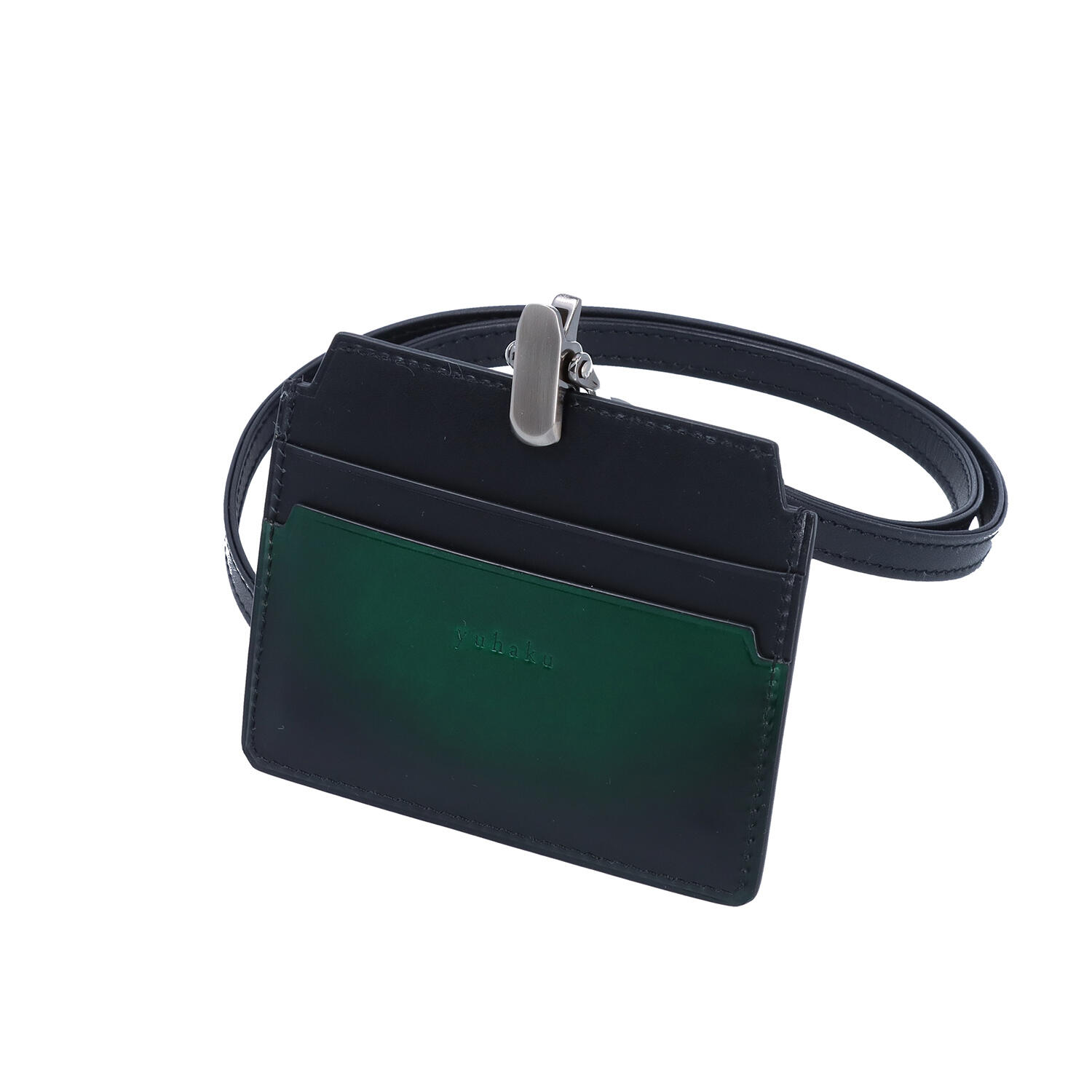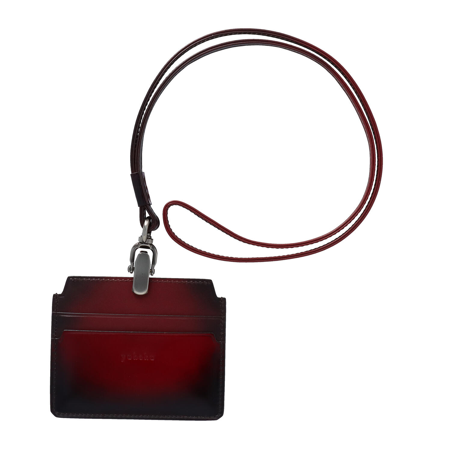 緊張感のあるジャケットスタイルにシャープな個性を添える、上品なツヤが魅力のIDケース。本体は手染めのグラデーションが施されたコードバンで、ネックストラップは牛革を使用しています。裏面にはカードを2枚入れることができる牛革製のカード段があり、ICカードなどを入れて便利にお使いいただけます。ネックストラップは首に沿い、本体はきちんと正面を向くように、機能的な金具を使っています。
