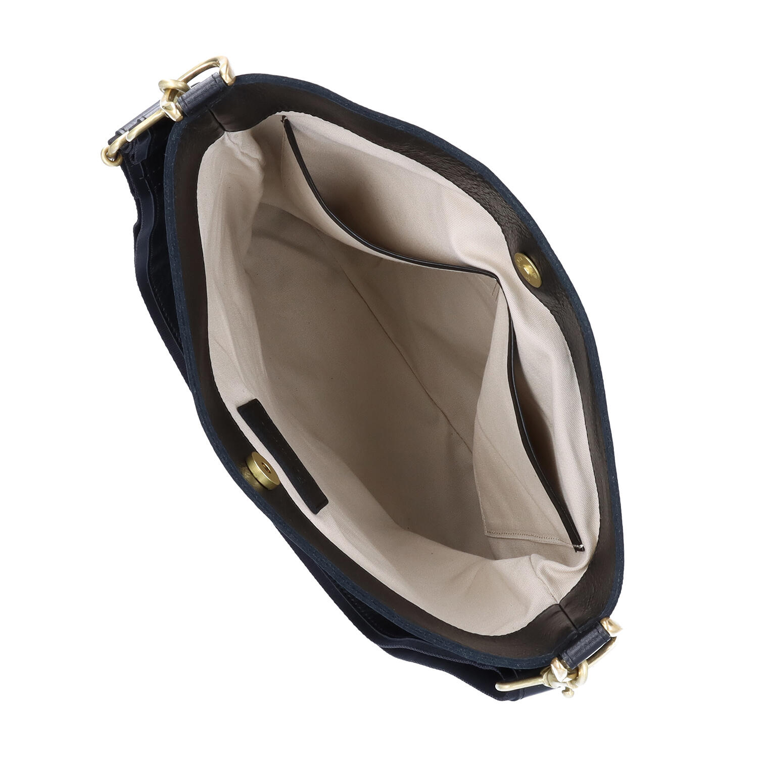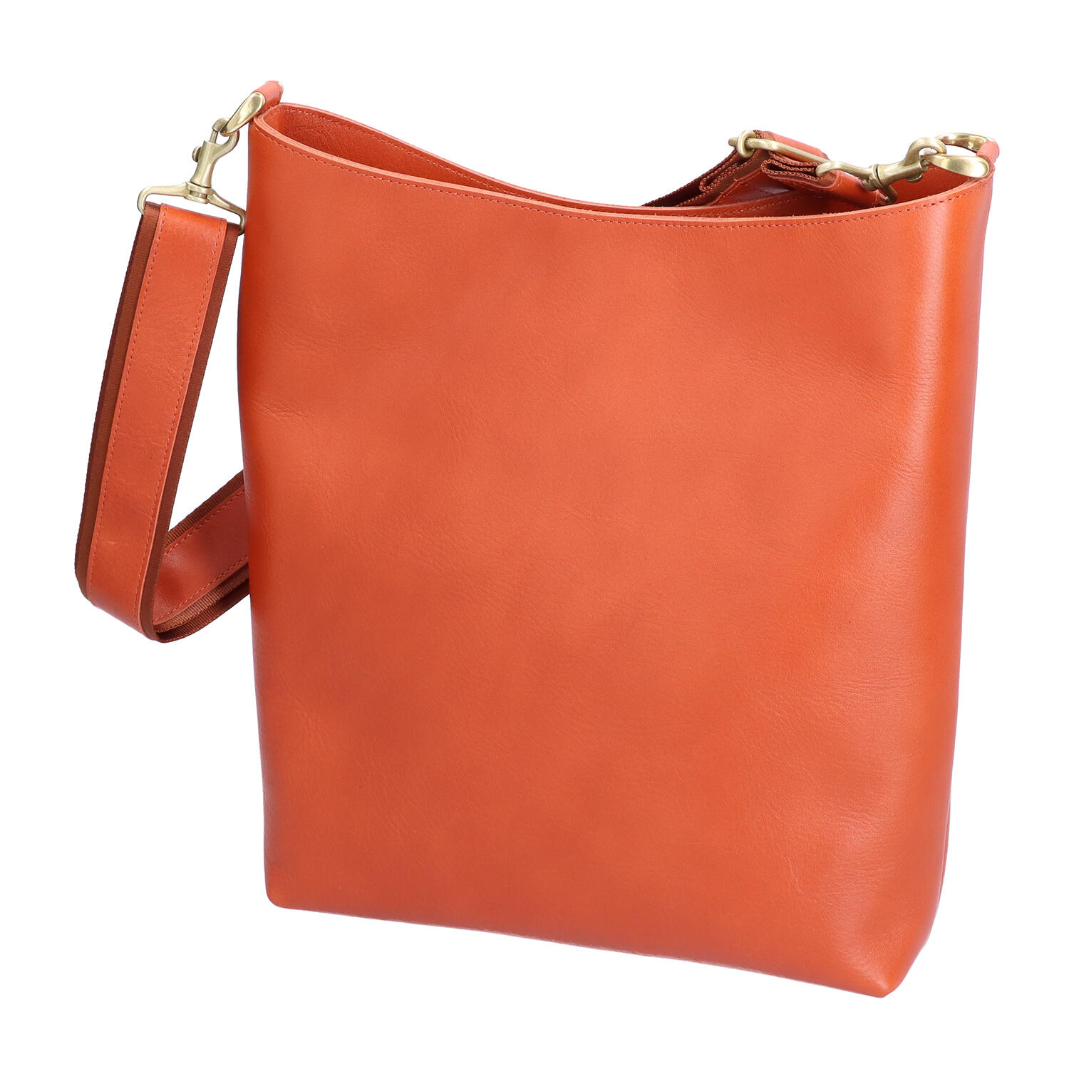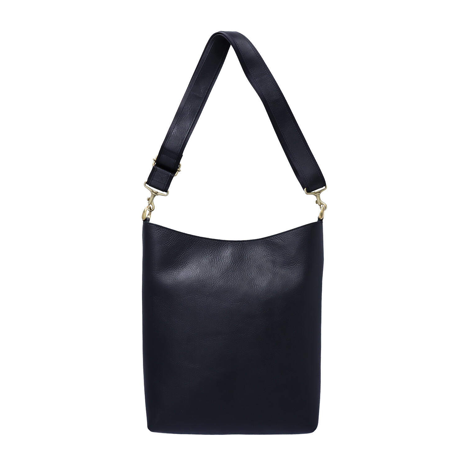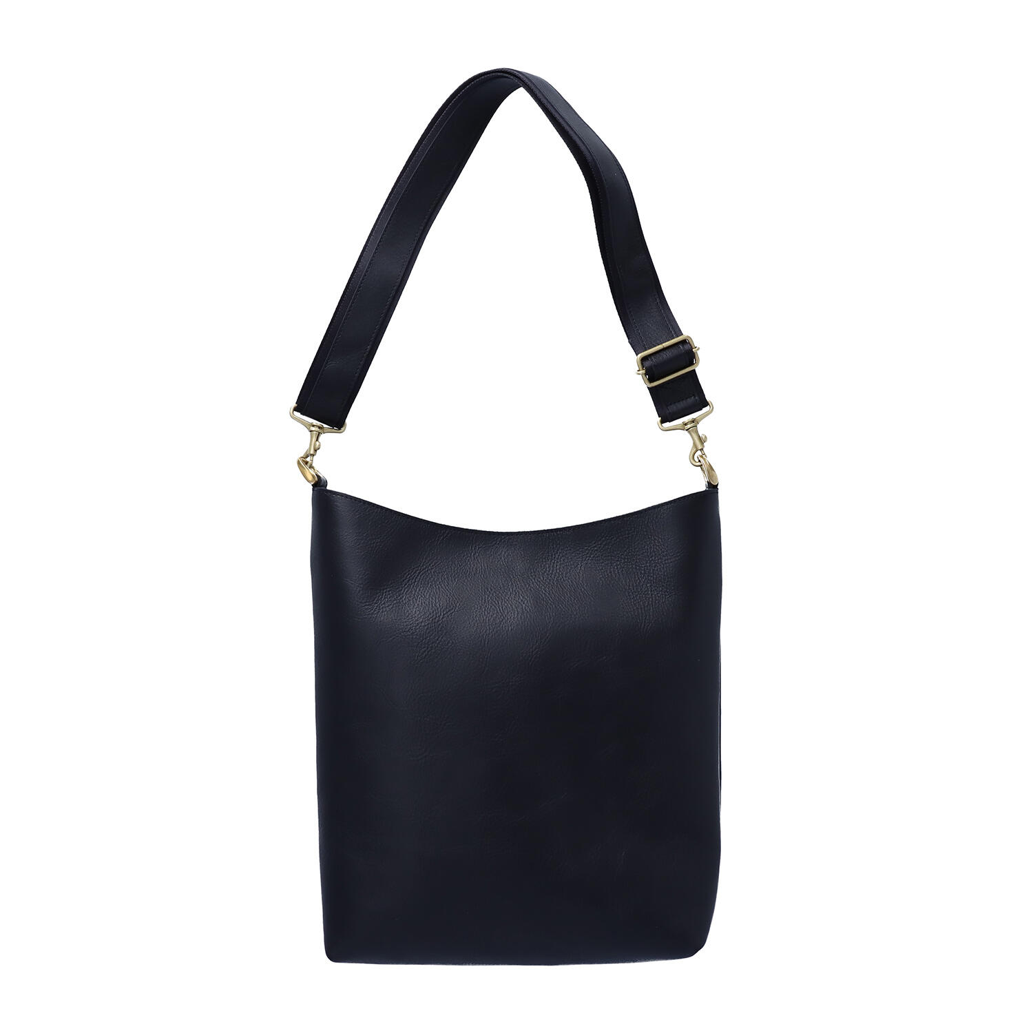 滑らかな質感と控えめなツヤが、どんなスタイルにも合わせやすいショルダーバッグ。A4サイズを収納できる容量で、すっきりした印象の縦型です。輝きをおさえた真鍮の金具は、本体のレザーと同じくエイジングを楽しむことができ、長く使うほどに愛着が湧いてくるシンプルなバッグ。ショルダーストラップは片側に布帛を使い、デザインとしても目をひく、滑りにくい仕様になっています。開口部の緩やかなカーブは視覚的に上品な印象を作り、型崩れも防いでいます。