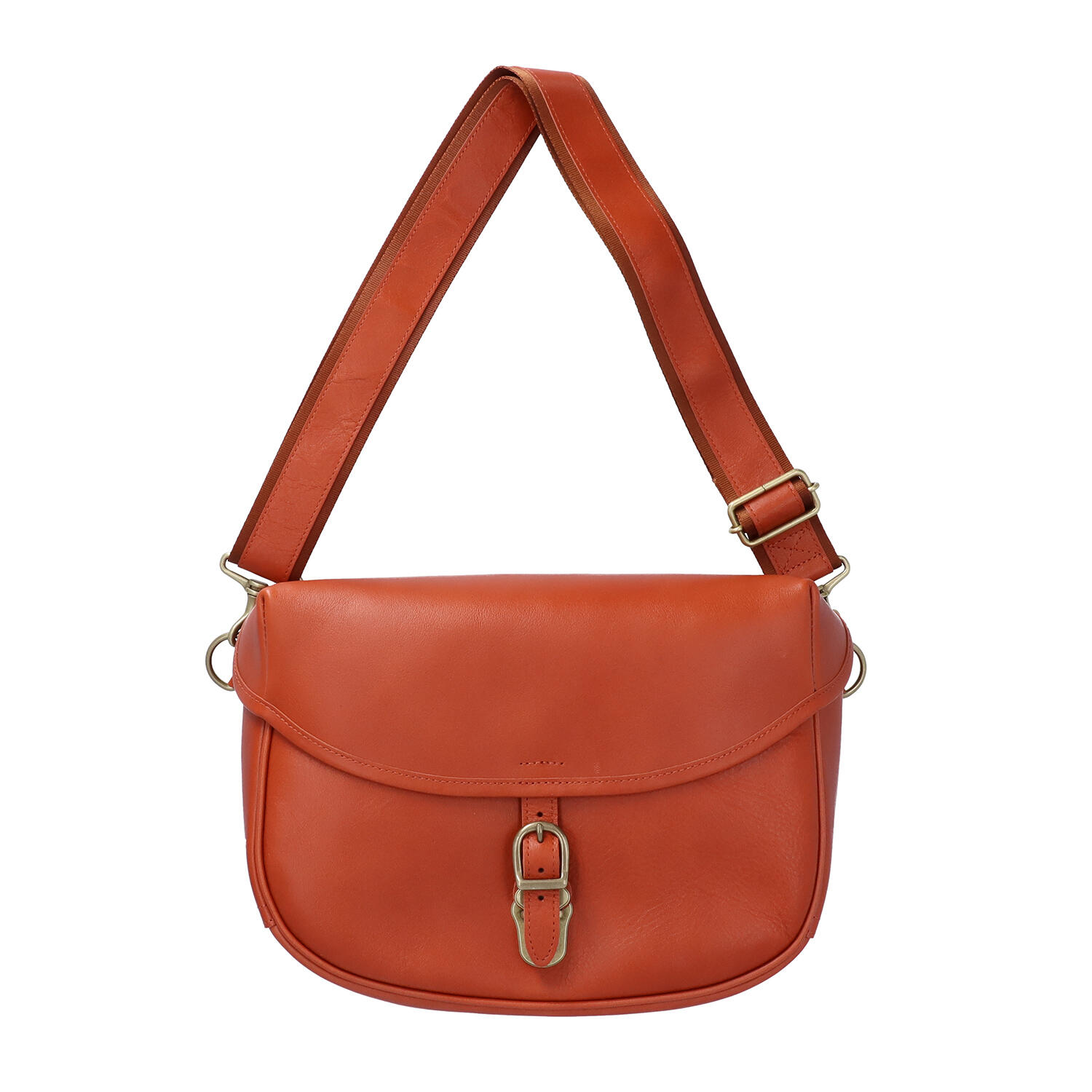カジュアル使いのアイテムなのに、丸みのあるシルエットと収まりのよいフラップできちんとした印象も演出するショルダーバッグ。「ハンティングバッグ」と呼ばれるトラディショナルなバッグを、シンプルにデザインし直し、機能的なポケットとショルダーストラップを配しました。同系色のレザーシューズに合わせてジャケットスタイルにも、活動的なスニーカースタイルにも合わせてコーディネイトすることができる、本革カジュアルバッグです。しっかりしたコシとハリのある素材を使いつつ、毎日使いたくなるよう、「軽量」も目指しました。