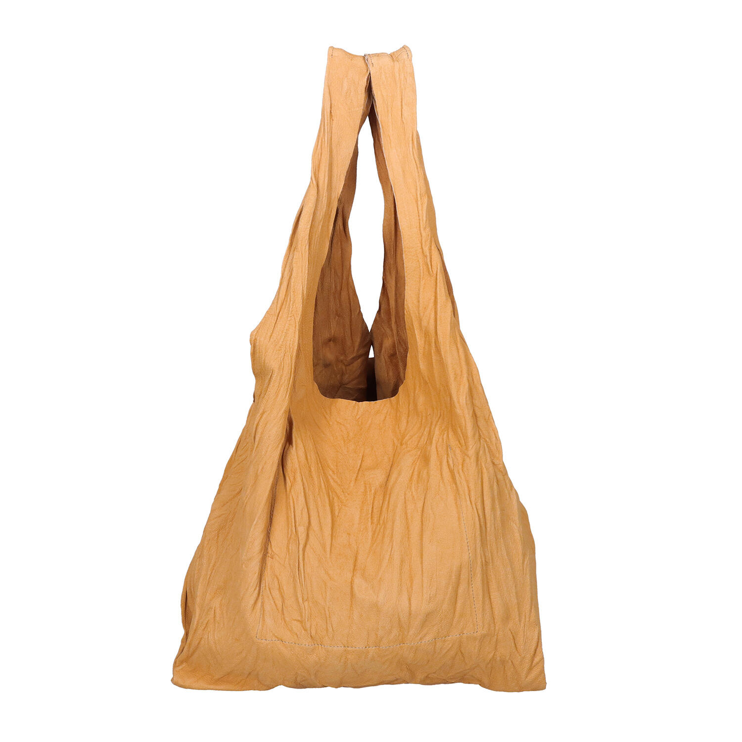 東京でなめされたピッグスキンに、撥水加工を施したショッパー型バッグ。折り畳んでもしわが目立ちにくい加工が施されており、デイリーの持ち歩き用としても、また旅行時のサブバッグとしても重宝しそう。持ち手の部分を結んで、ノットを握るように持つのもお洒落。内側にはポケットがひとつと、鍵などを付けることができるストラップがついています。小さくてかわいい大きさ違いもご用意しています。