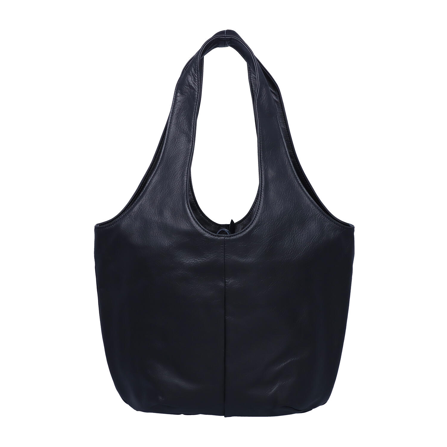 シンプルな黒でも、丸みのある形が優しい印象の牛革バッグ。表面に特殊なオイルと染料による加工を施しており、水が染み込みにくく、汚れも付きにくいのが特長です。細いテープで開口部の開きを調整、スナップボタンでより丸く、少し小振りに形を変えることが可能です。内側にはフリーポケットとファスナー付きポケットがあり、小さな小物も整理して入れることができます。