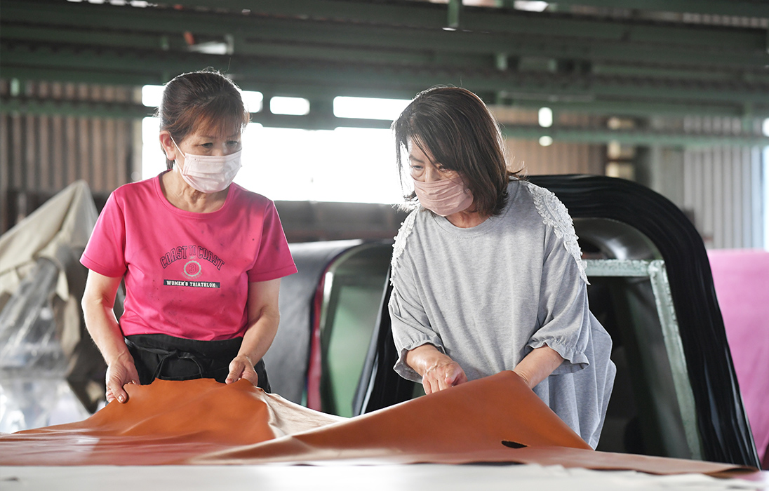 寺一皮革の井料加保里さん(左)と代表の寺内真寿美さん(右)。