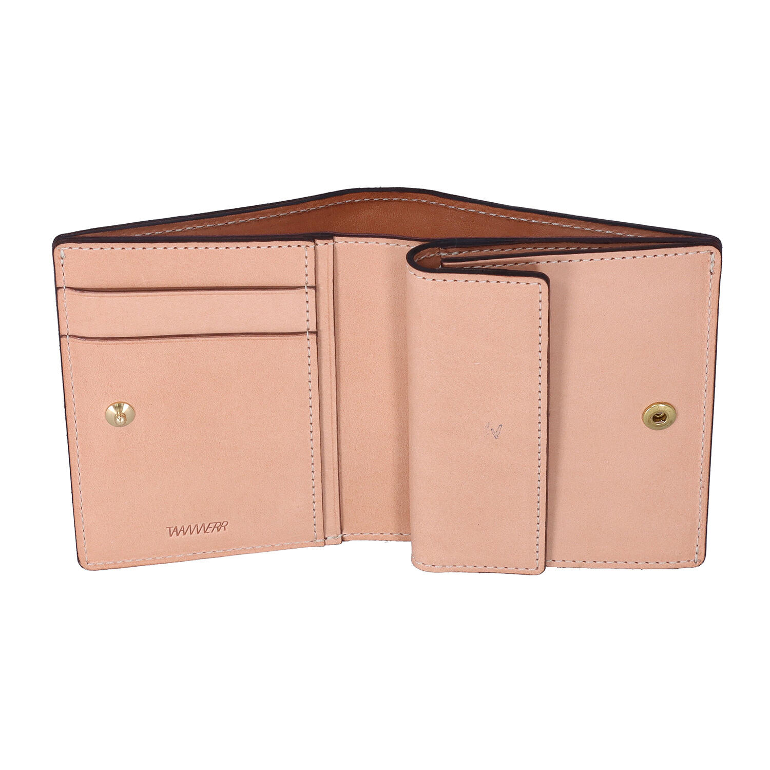 起毛革の中でも毛足が短い「ヌバック」にオイルを染み込ませ、目の粗さの違うサンドペーパーを用いて滑らかな肌触りに整えた「オイルヌバック」。外側にはそれを使い、内装には「ピット槽」なめした「ピットヌメ革」を使用し、2種類の経年変化が楽しめる財布です。カードポケット4ヵ所と隠しポケットがあり、あとは紙幣スペース、コインスペースを備えたシンプルな作り。毎日触れることで素材のエイジングを味わうことができます。