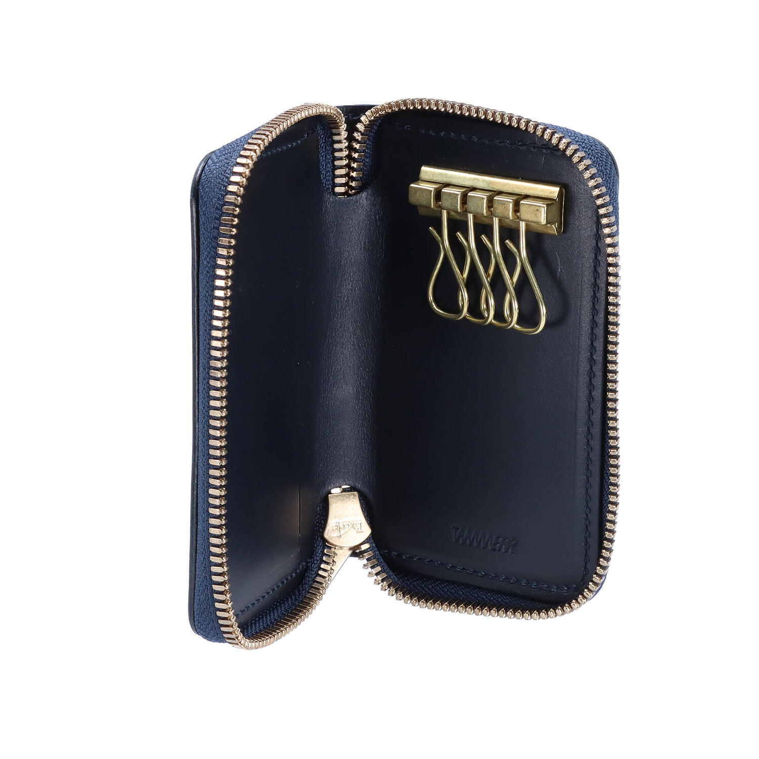 ピット槽でなめしたキップレザー(仔牛革)を使用した、オーソドックスな形のシンプルなキーケース。大きさによってはスマートキーも収納できる厚みをもたせました。中にはカードポケットをつけ、万が一のための紙幣やICカードなども入れることができます。内装も同素材を使った贅沢な仕上げ。鍵が作る「キズ」も愛せるようになる総革で、経年変化が楽しみになるアイテムです。