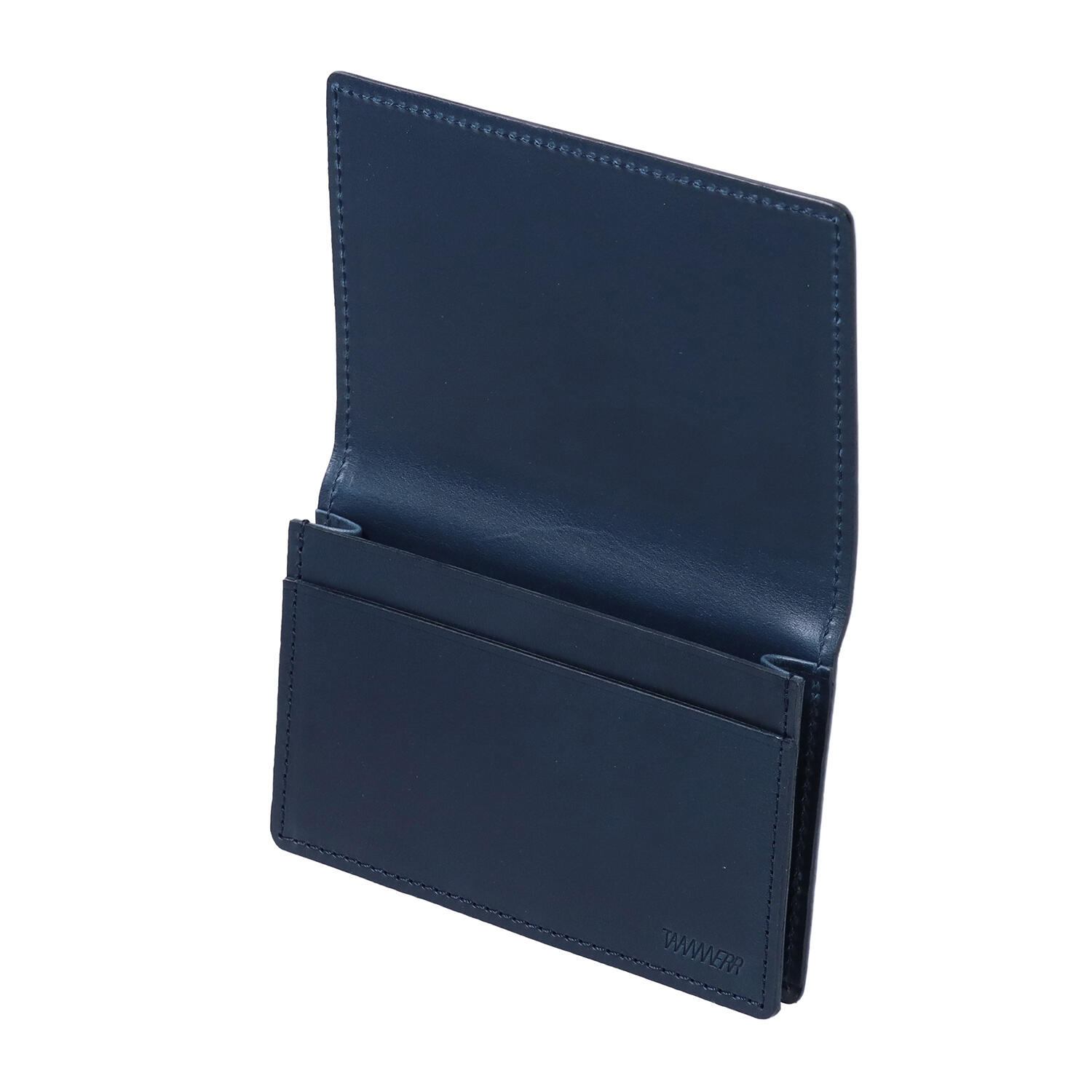 名刺をたくさん入れることができる「箱マチ」タイプの名刺入れ。ブランドロゴは内側、ステッチも目立たせない、ソリッドなデザイン。ピット槽でなめしたキップレザーを使い、緊張感を放つ縫製と華やかでなくともオリジナリティのある色と質感は、持つ人の個性を際立たせてくれます。「名乗る前の自己紹介」が、印象的なビジネスシーンをスタートさせます。