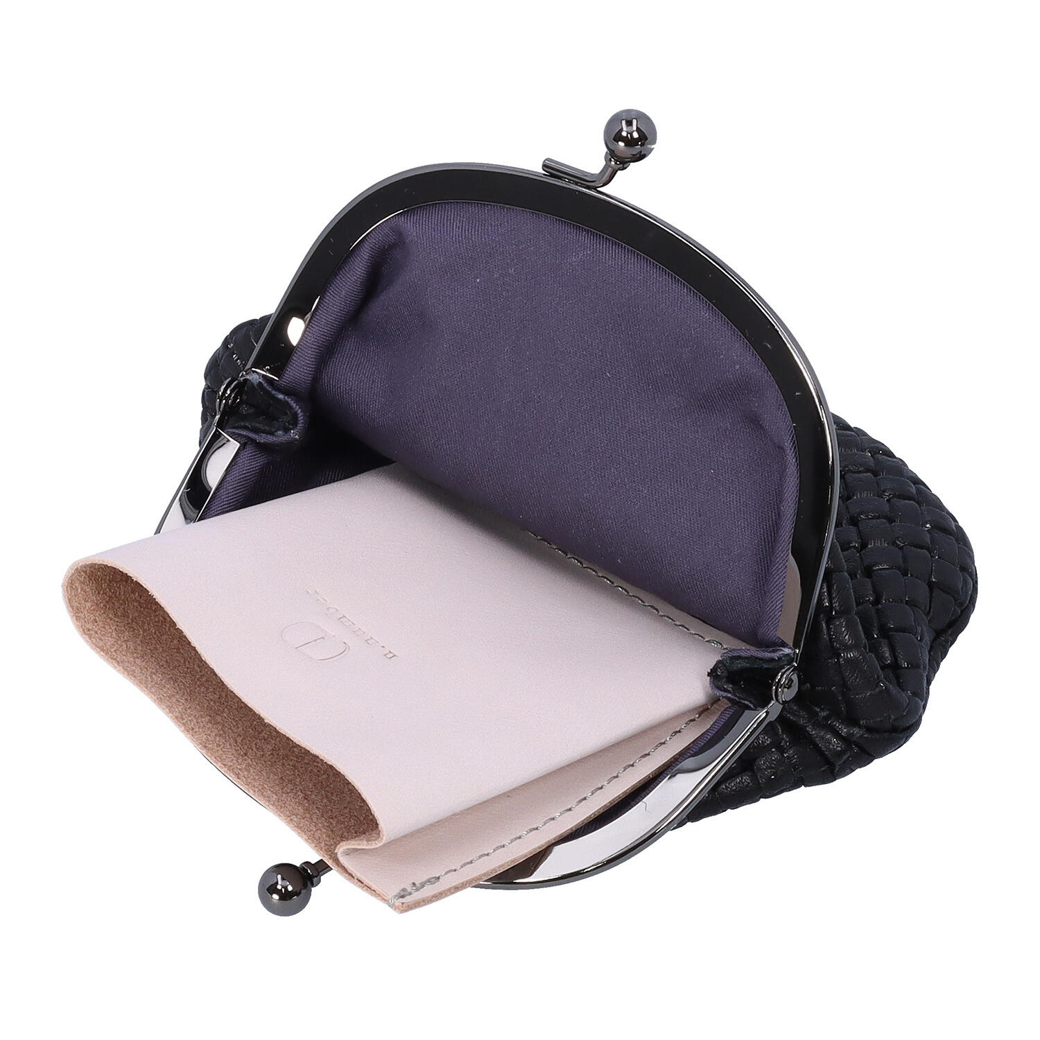 カードを縦に入れることができるため、通常のがま口型のコインケースより少しだけ大きい作りの口金型のかわいい財布。小さなポケットが取り外せる仕様で中に入っており、仕切りの役割を果たしながら、使うかたに合わせてパーソナライズできます。弾力とテクスチャーある肌触りは、小さくても落としにくく、大きなバッグの中でも見つけやすいとご好評いただいています。