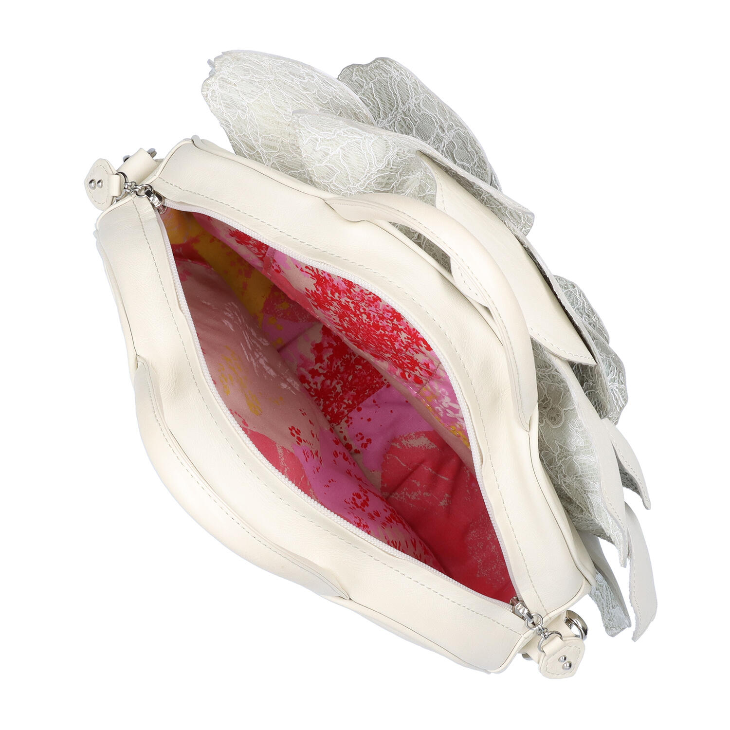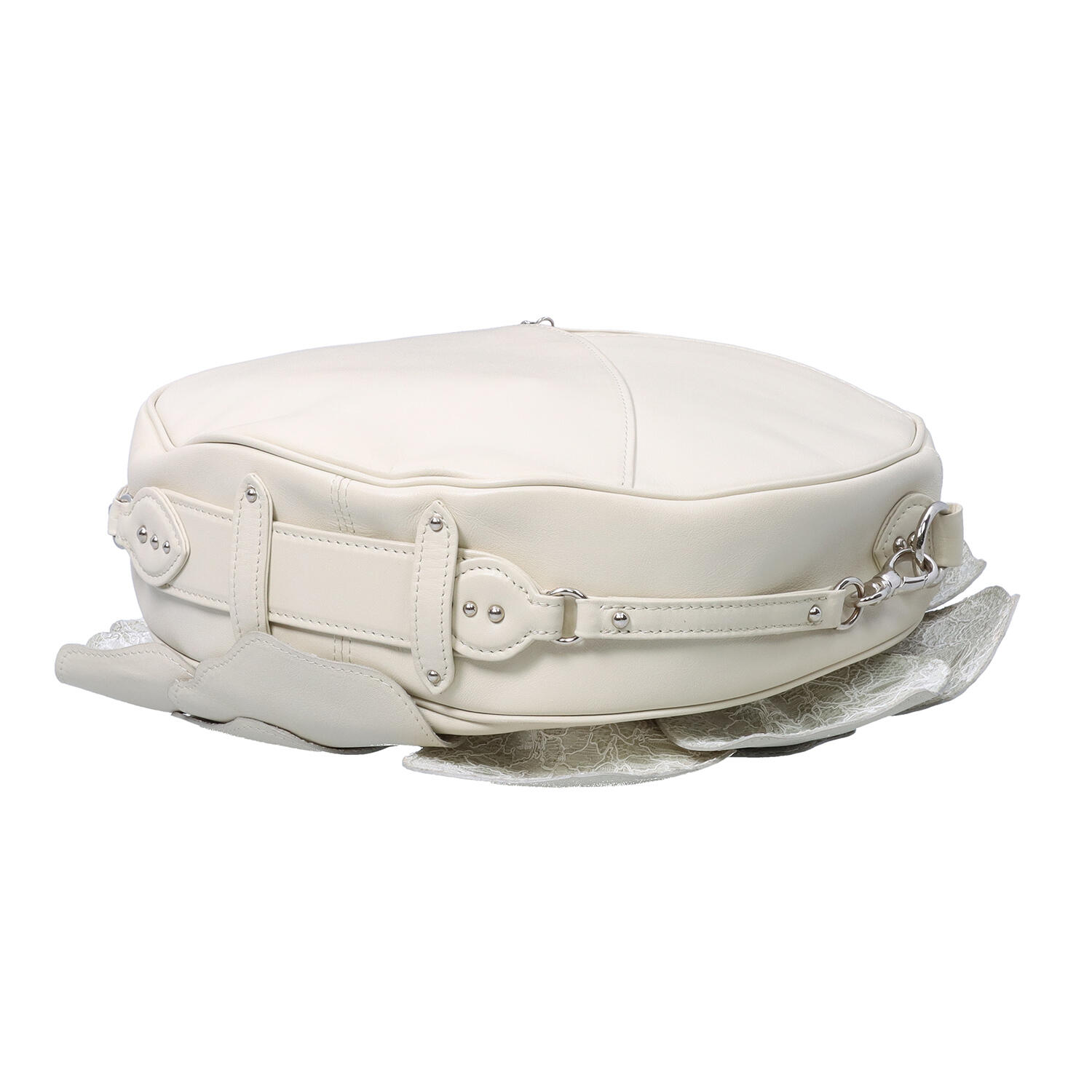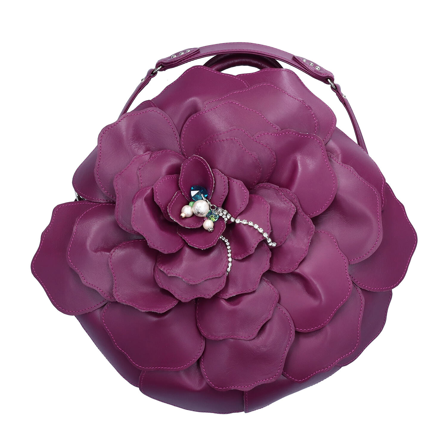デザインだけではなく、その大きさにも目を奪われるバラのバッグ。花びらの一枚一枚をデザイナーが手で成形し、裏側にレース生地を貼ってどの角度から見ても美しい仕上がりを目指しました。ビーズやラインストーンの装飾は、女性の心の変化に寄り添う「意味」のある形。高揚感とおしゃれ心を満たしてくれる、ハンドメイドのバッグです。背面のポケットはバラのつぼみをイメージし、手に持った時も膝に置いた時も美しく見えるよう、仕様やパーツにこだわっています。