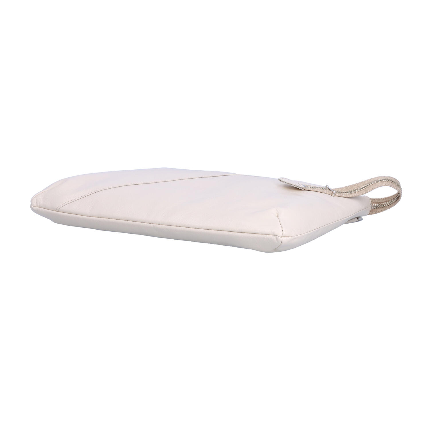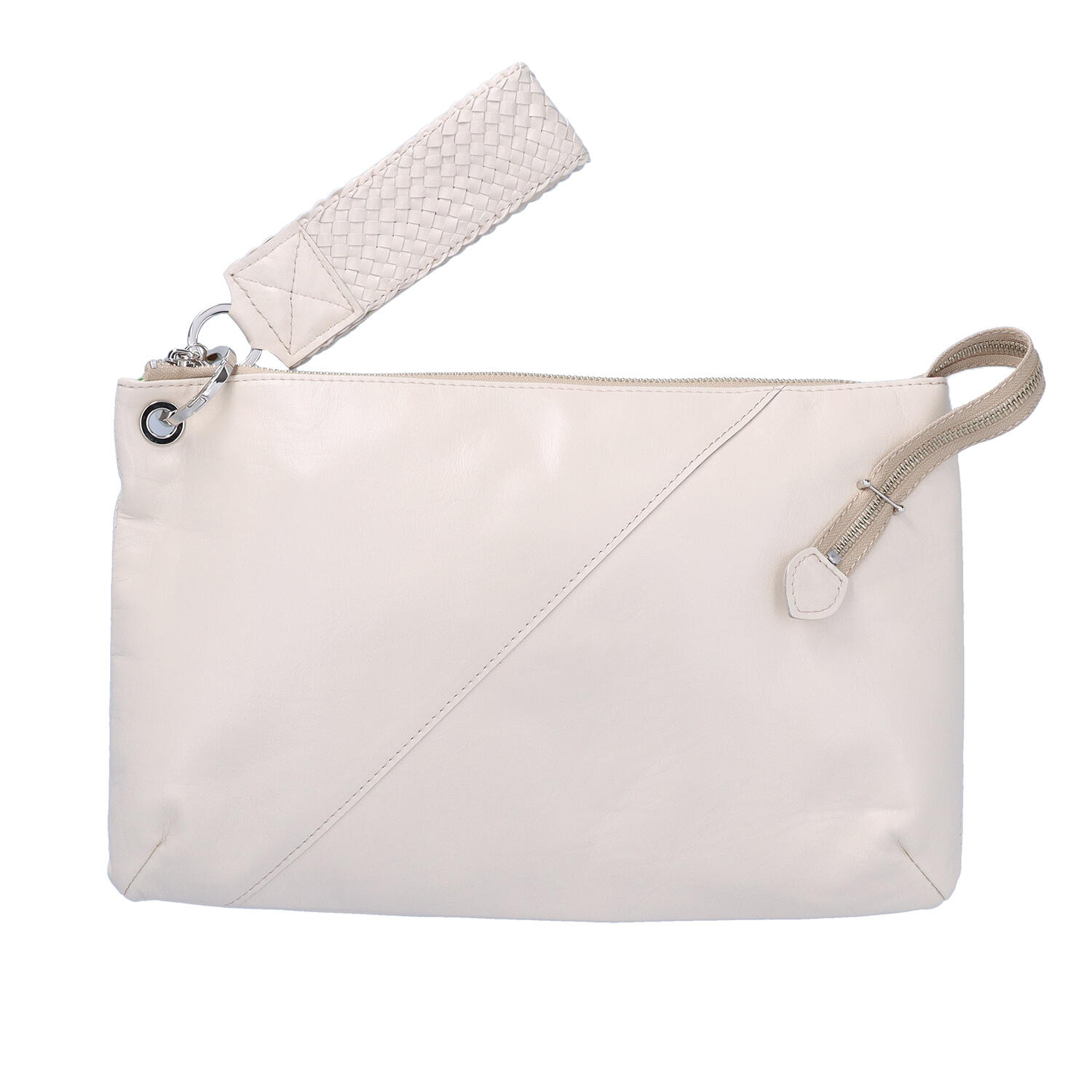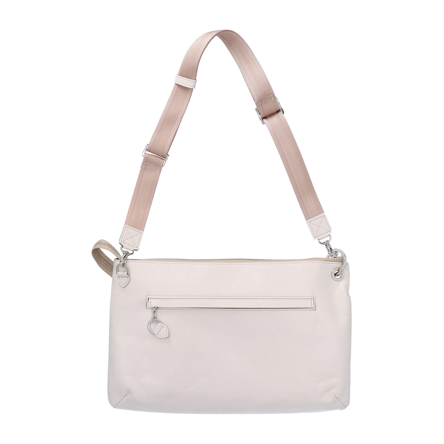 クラッチバッグ、クロスボディ(斜めがけ)、ショルダーバッグなど、ストラップの調整と取り外しで色々なスタイルで使うことできる薄マチのバッグ。ショルダーストラップは革ではなくあえて織柄の入ったナイロンテープを使用することで、上品ながらスポーティな要素を取り入れました。斜めに入った切り替えや、大きく伸びたファスナーテープが気取らない遊び心をプラス。背面のファスナーはレザーで覆い、ウェアを傷つけない配慮がなされています。