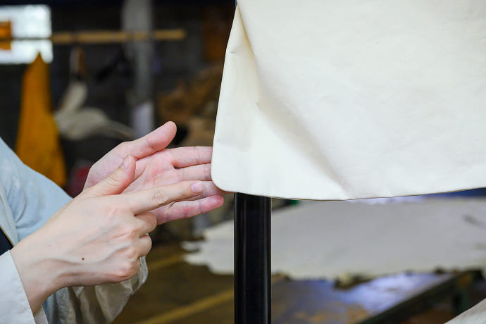 その思いを込めてつくっています。白なめしは、姫路でタンナーをしている僕らの基本となる革です。けっしてないがしろにはできません。