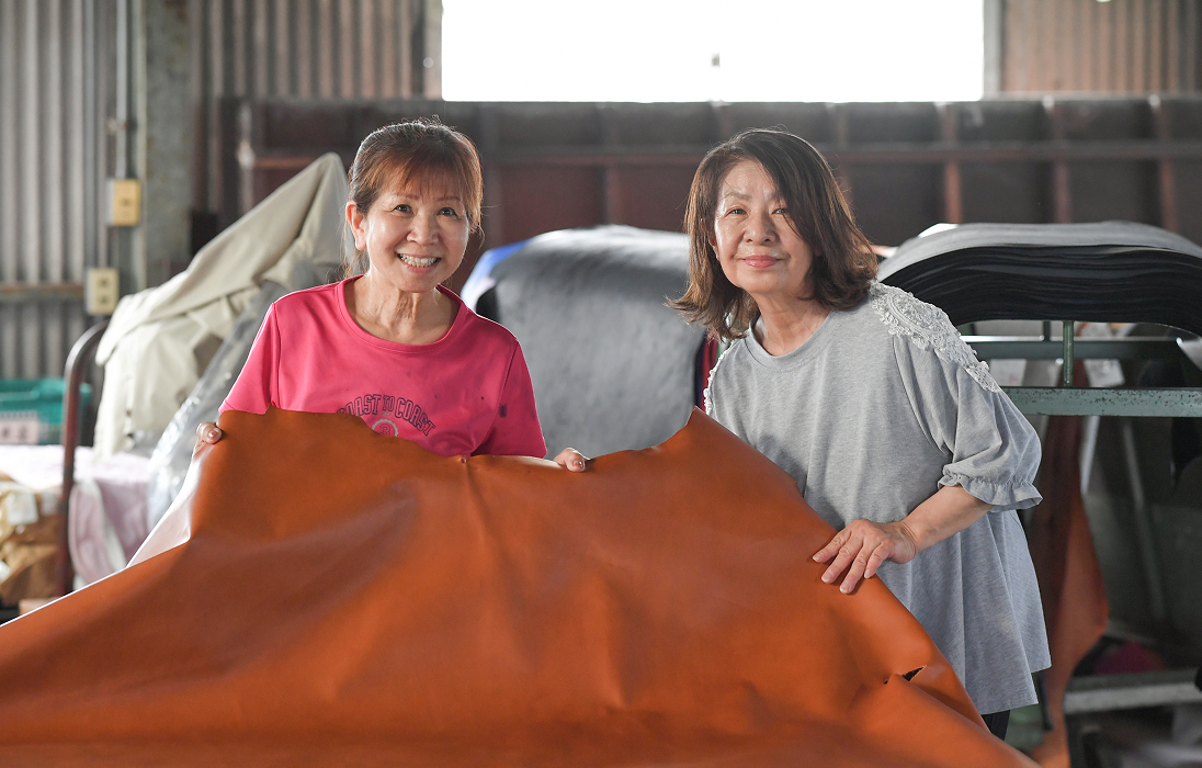 寺一皮革の井料加保里さん(左)と代表の寺内真寿美さん(右)。