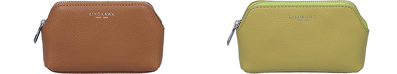 女性らしさはあっても本革でしっかりした作り。甘くないデザインなので、化粧品を入れてデスクの上に置いていてメイクポーチには見えないし、内装はテフロン加工をした生地を使い汚れがつきにくいのも、用途を選ばずに良いですよね。外側は汚れやキズが目立ちにくい、型押しシュリンク加工の牛革です。ブラック、アイボリーの色違い、もう一回り大きいMサイズもございます。色によって印象が全く変わるので、ギフトにお勧めのアイテム。男性にも女性にも選ばれています。