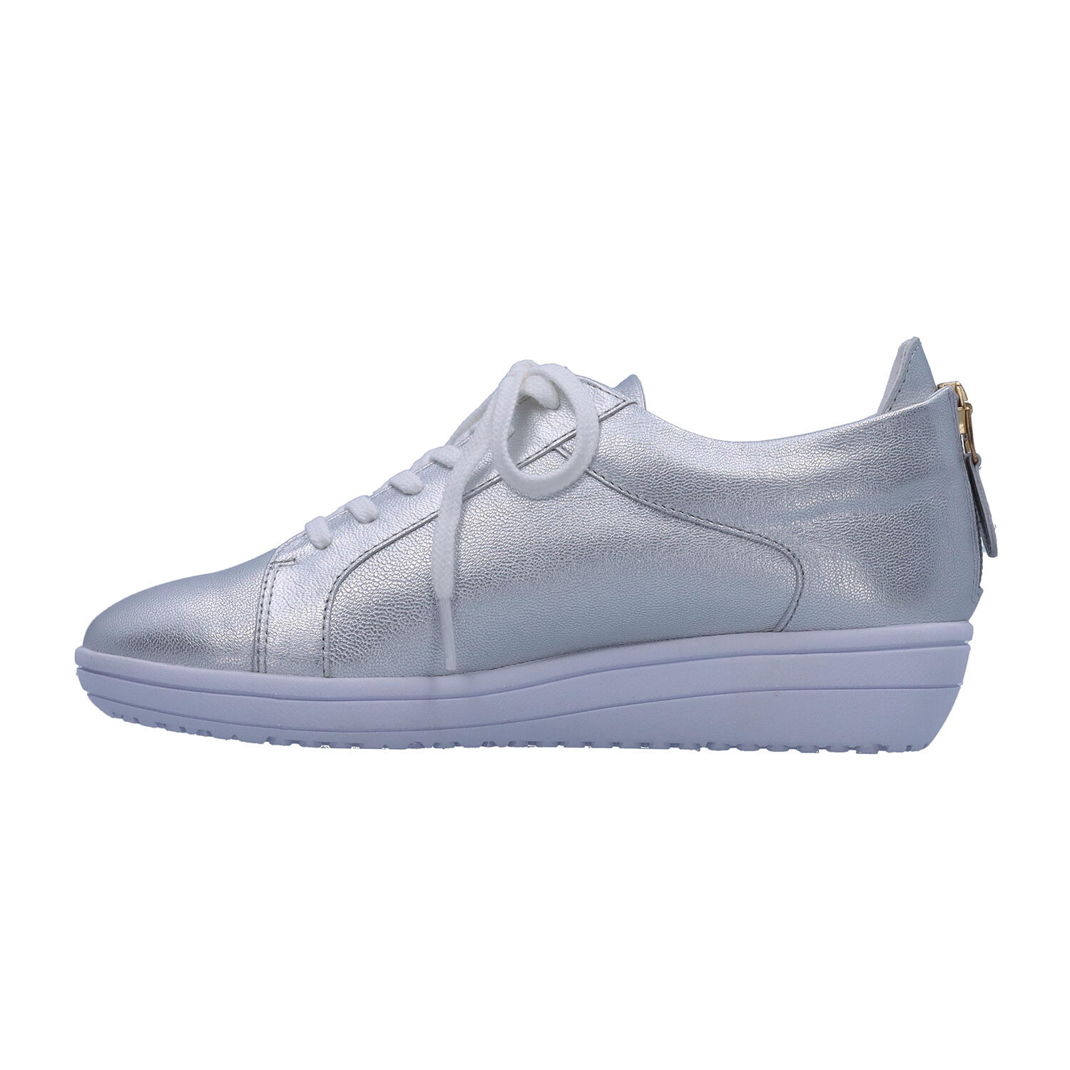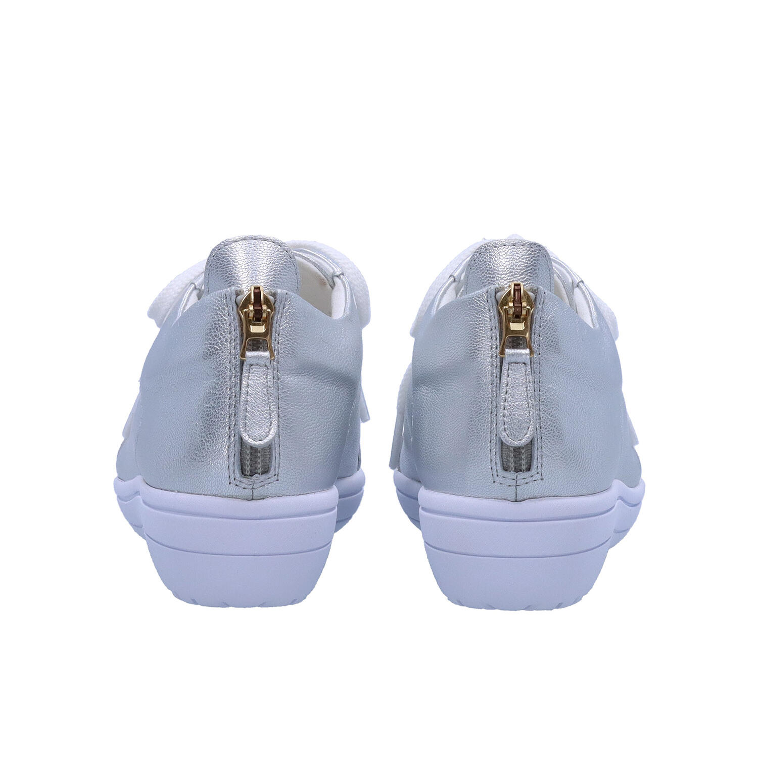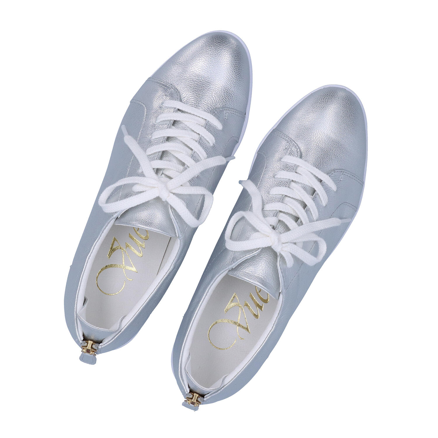 ソールとアッパーをなだらかな曲線でつなげ、すっきりとしたフォルムに仕上げたレザースニーカー。アッパーの素材は肌理(きめ)細かく上品な印象のシープレザー。アウトソールは軽くてクッション性も高く、寒くなっても固くなりにくい「EVA」素材を使っています。かかとのファスナーで着脱も簡単です。