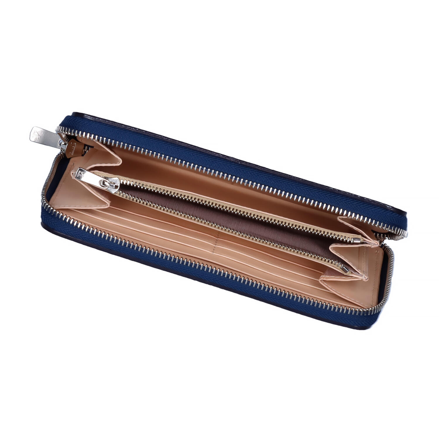 資源の有効活用を目的としたプロジェクトから生まれたレザーアイテムブランド「ステイ」。素材は使いこむうちに出てくるツヤが魅力の国産猪革を使用しています。柄のようにも見える毛穴が他のどの皮革素材とも違う個性があります。また猪革は耐水性、耐摩擦性があり、キズが付きにくいうえ、使いこむうちに出てくるツヤ、軽さも魅力です。素材の個体差が引き立つシンプルなデザインのロングウォレットは、コインスペース1ヵ所、お札スペース2ヵ所、フリーポケット2ヵ所のオーソドックスな仕様。カードは12枚入ります。カラフルな7色の内装は牛ヌメ革。ブラックとブラウンは同素材で合わせた落ち着いた仕上げです。