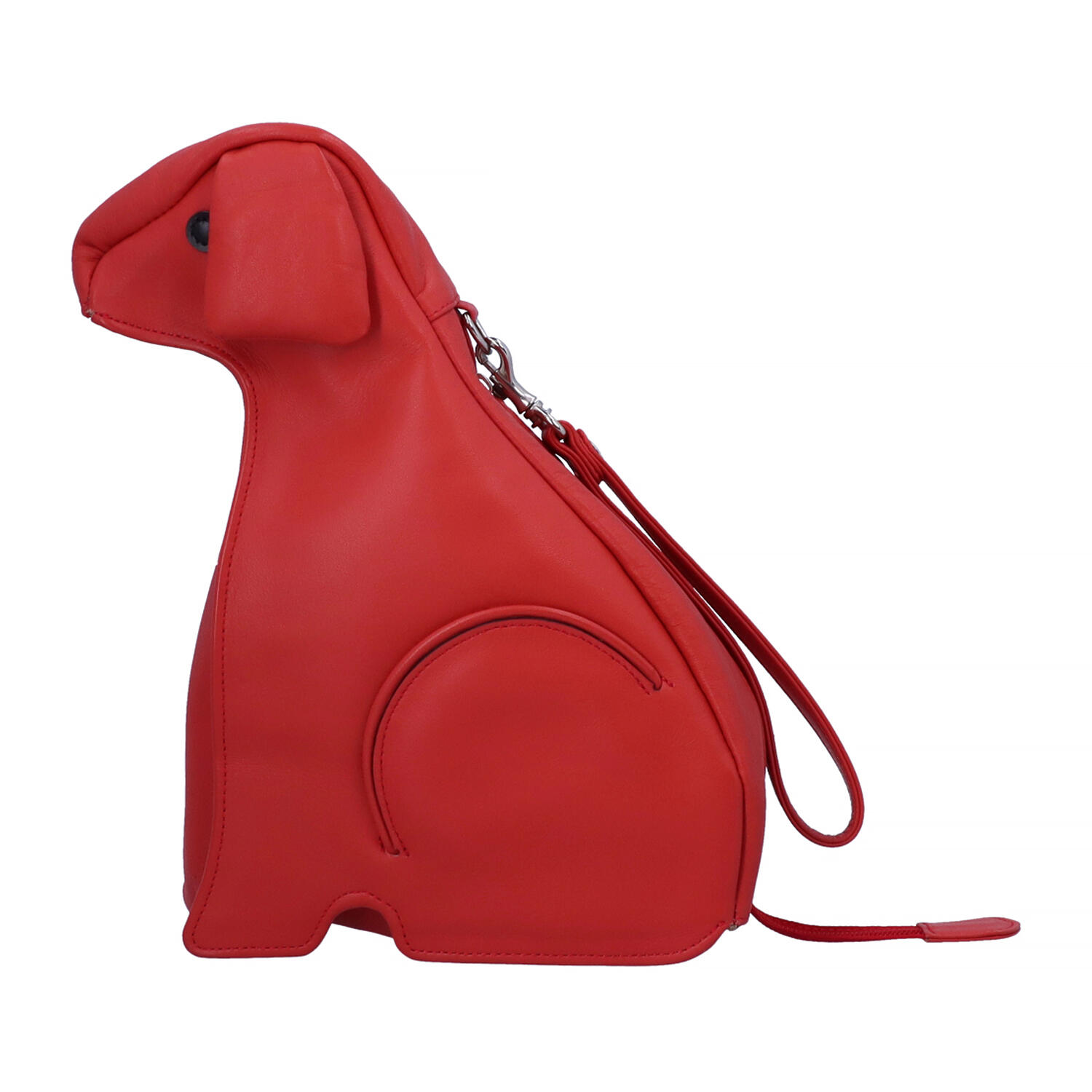 「外縫い」や「袋縫い」を場所によって使い分け、自立できるしっかりした形と、かわいい顔立ちに仕上げたかわいいバッグ。ストラップで持つのではなく、抱っこしたくなるような子犬サイズです。お座りをしている脚の部分が小さなポケットになっています。くるんと丸いしっぽは、しっかり握ることができるファスナーの一部分。柔らかく、軽い本革を使い、ひとつひとつ熟練の職人が作るキャラクターバッグ。高い技術があるからこそ作り込める、大人ためのかわいいバッグです。一回り大きいサイズもあります。