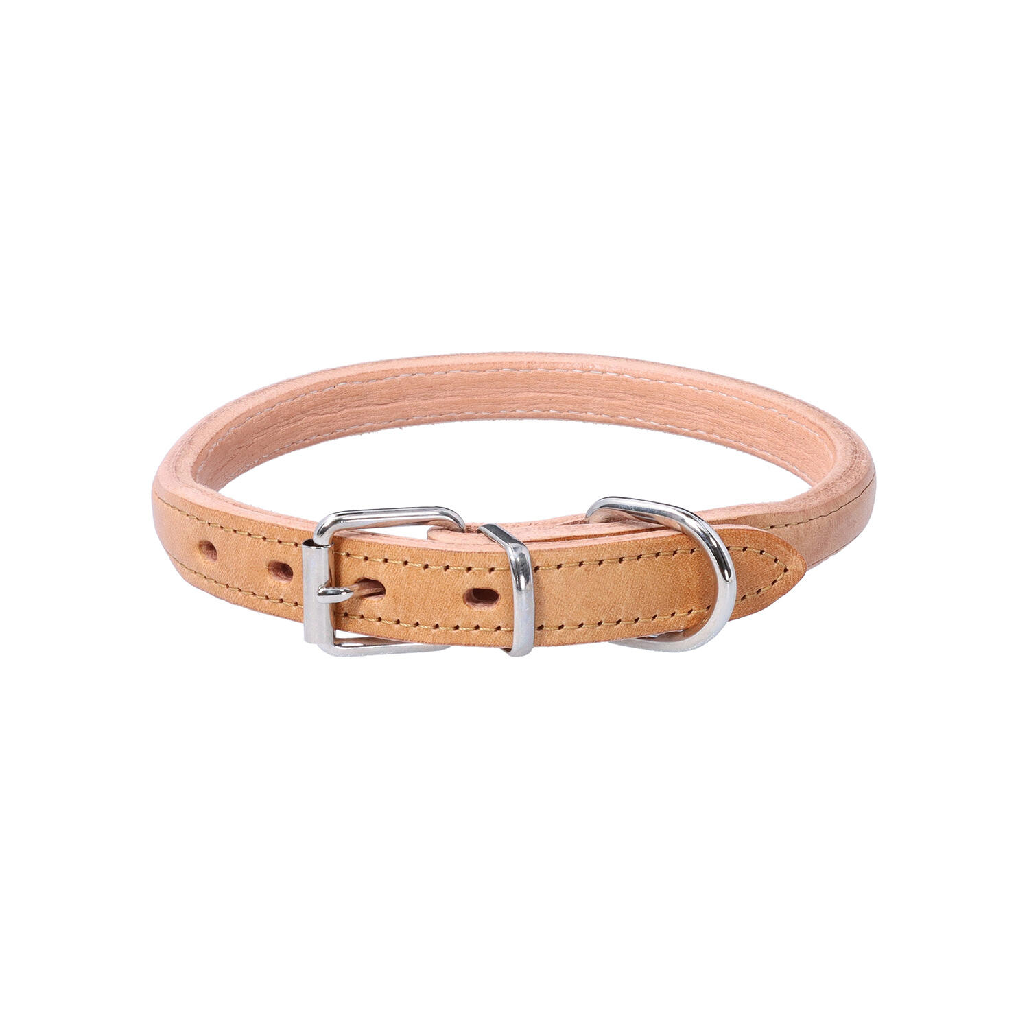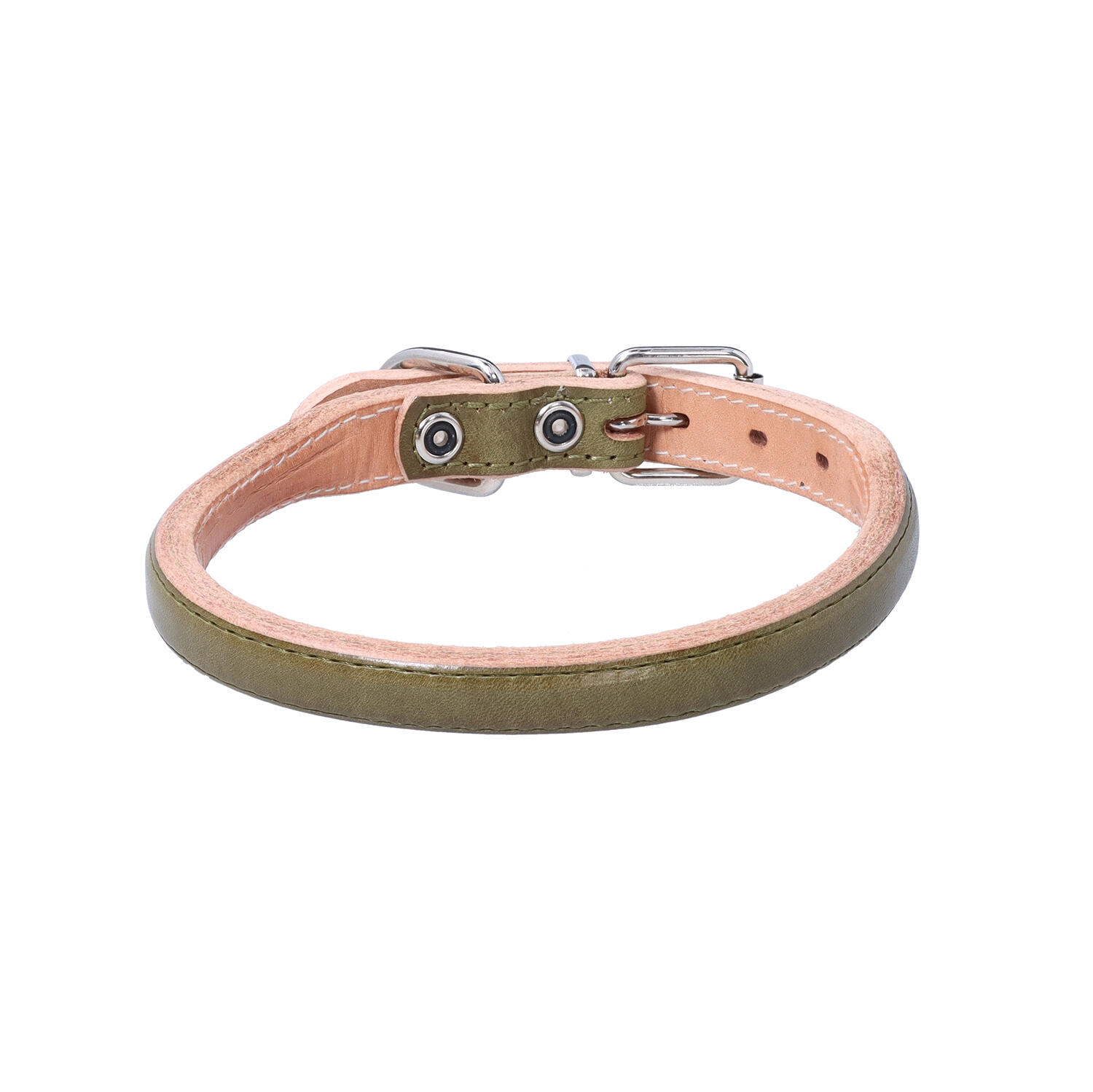 EUの環境基準「REACH」「RoHS」をクリアした牛革のみを使用。ピット槽でじっくりと植物タンニンなめしを行った革を使用し、ペットの体へのやさしさに配慮した素材と設計で仕立てた首輪です。一枚革を丸くなるよう成形し、革の縁がペットの体に直接触れにくい「丸首輪」の加工技術を採用しています。伝統的な草木染の技法を発展させ、鮮やかで奥行きのある発色に仕上げました。5色展開で、丸首輪とのカラーコンビネーションもお楽しみいただけます。