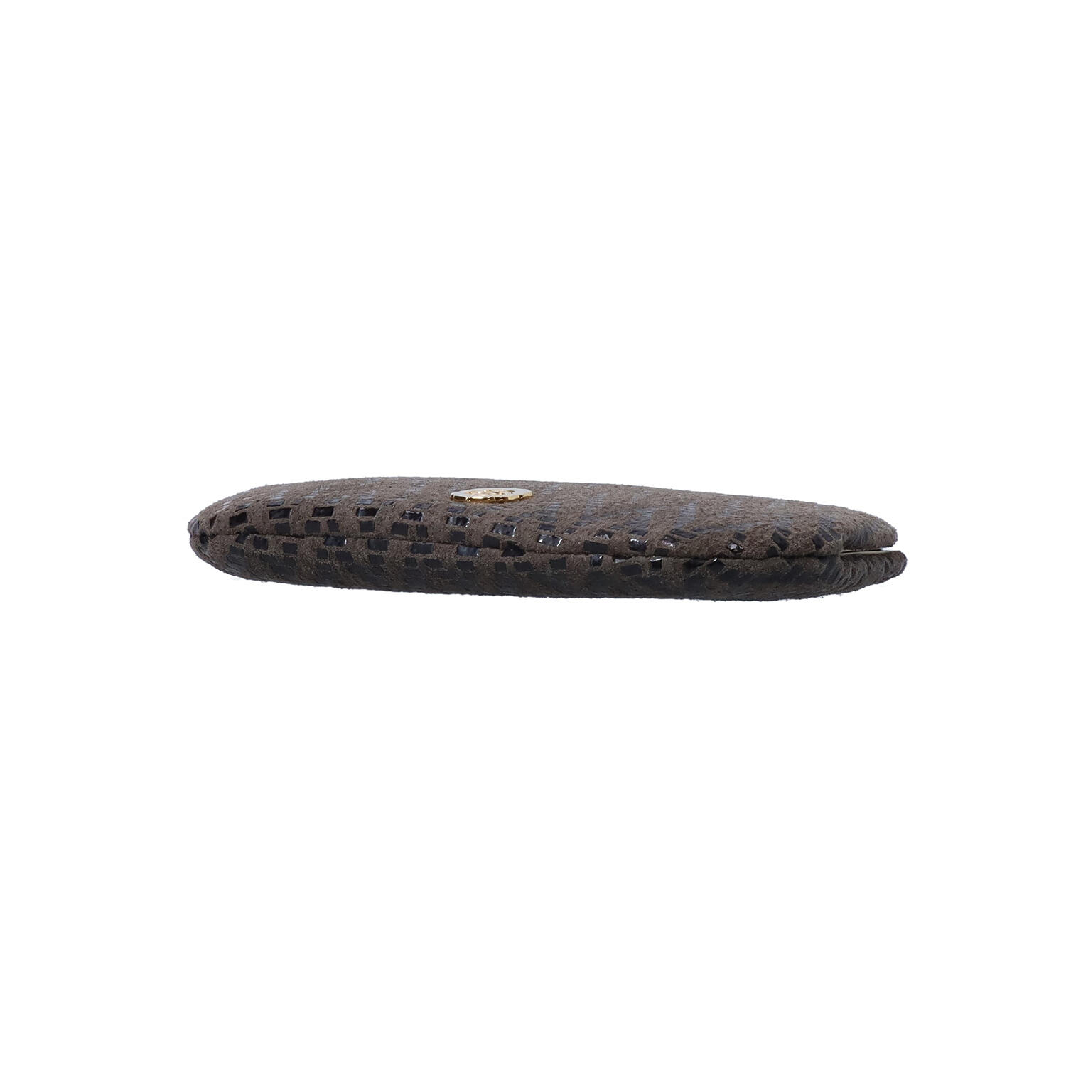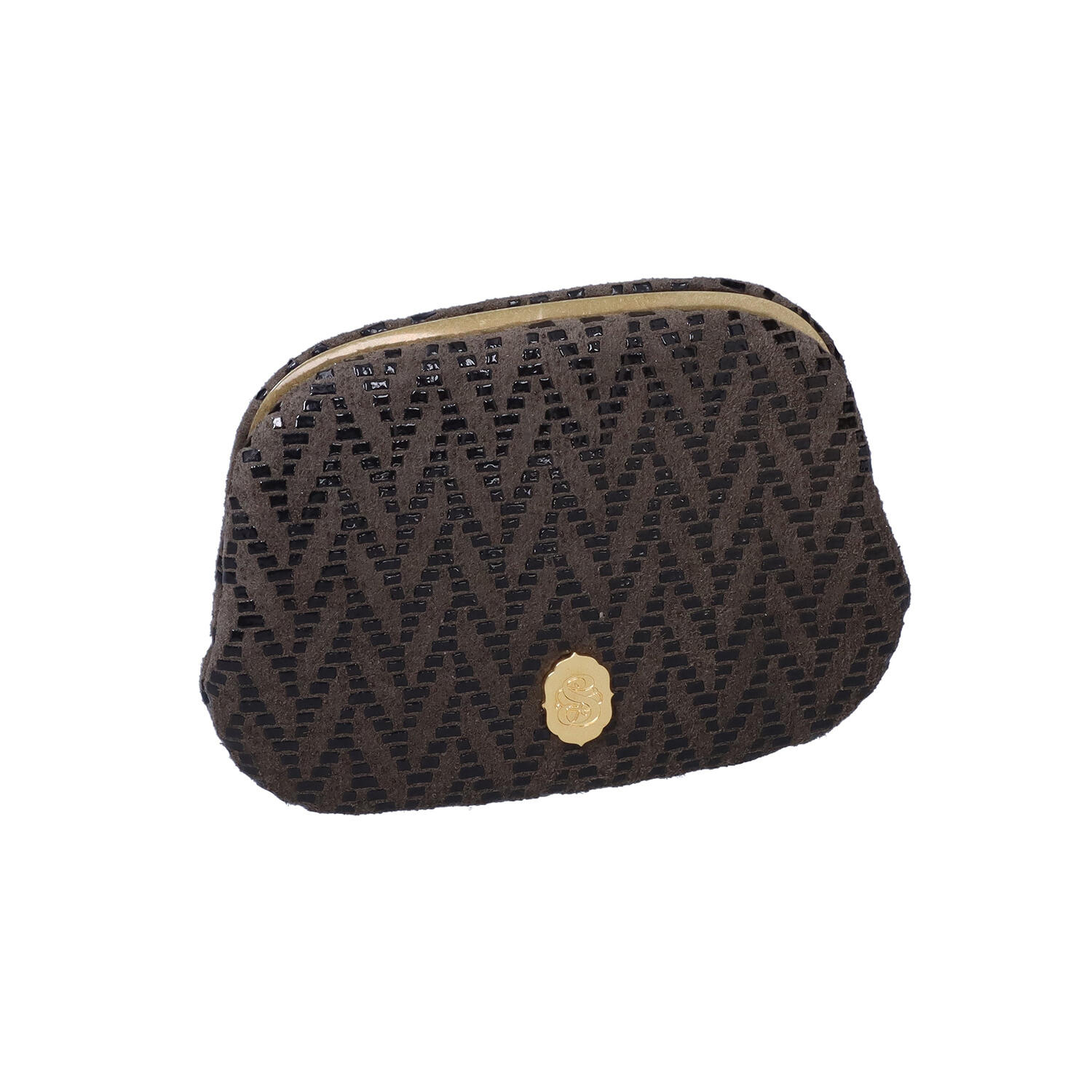 突起のない口金を使った「押し口」タイプのスマートな財布。大きく開くので中が見やすく、コインを出す仕草もスマートに。角がなく薄いため、クラッチバッグなどのコンパクトなバッグの時に便利なアイテムです。古くも美しい、パリのアパルトマンの「ヘリンボーン柄の木の床」にインスピレーションを得た柄をレザーで表現しました。東京でなめされた「ピッグスキン」のスエードに、熱を利用した加工でつややかな柄を圧着しています。