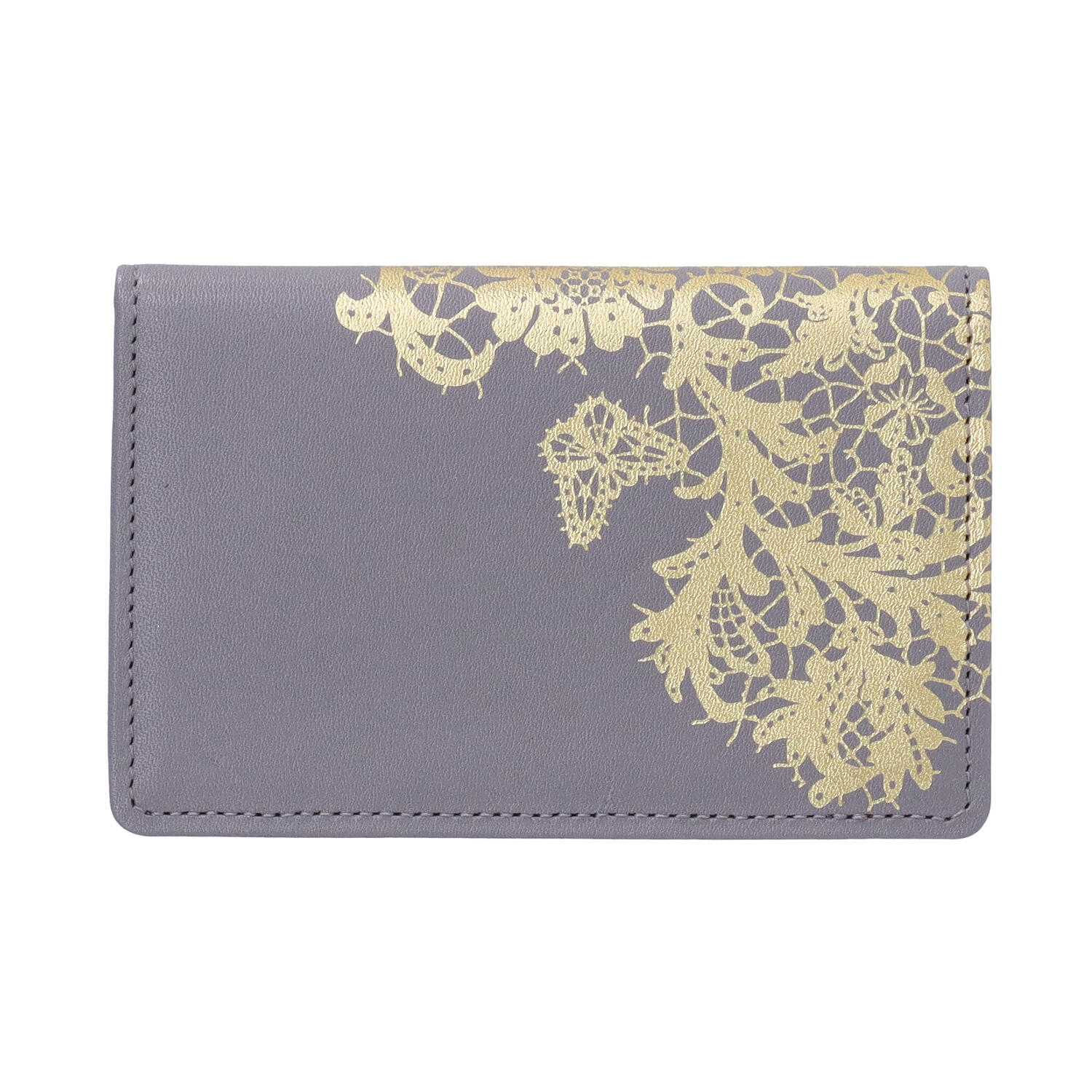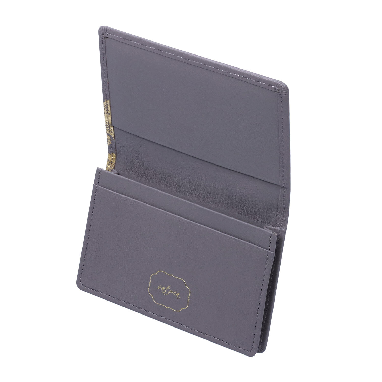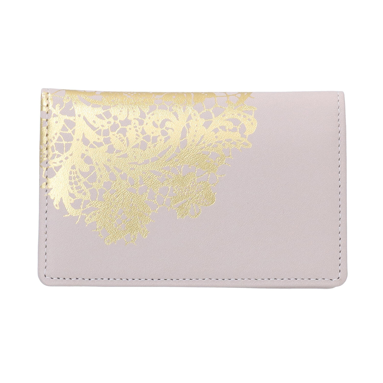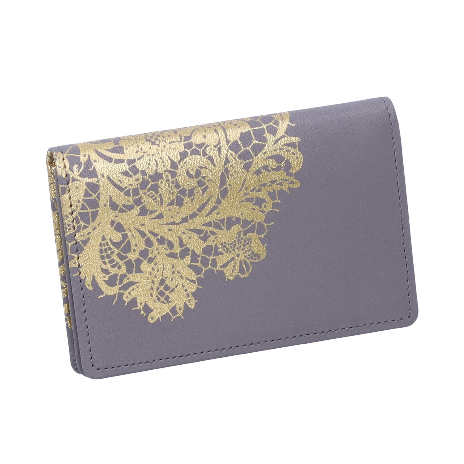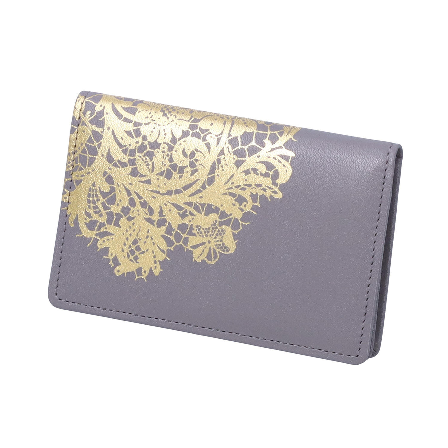 華やかでフェミニンな印象の名刺入れです。デザイナーが好きな、パリにある様々な「庭」のイメージを箔を使ってレース調に描き、レザーにプリントしたシリーズ「レースの庭」。比較的容量が多い「通しマチ」タイプで、いただく名刺だけではなく差し上げる名刺も多いかたにお勧めです。箔は使い続けていくうちに摩擦によって変化し、ヴィンテージ風の落ち着きが出てきます。