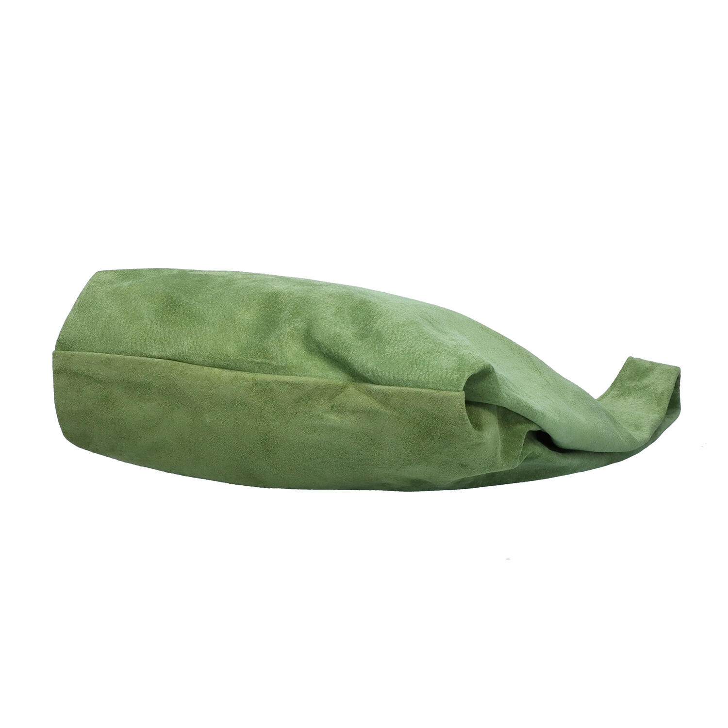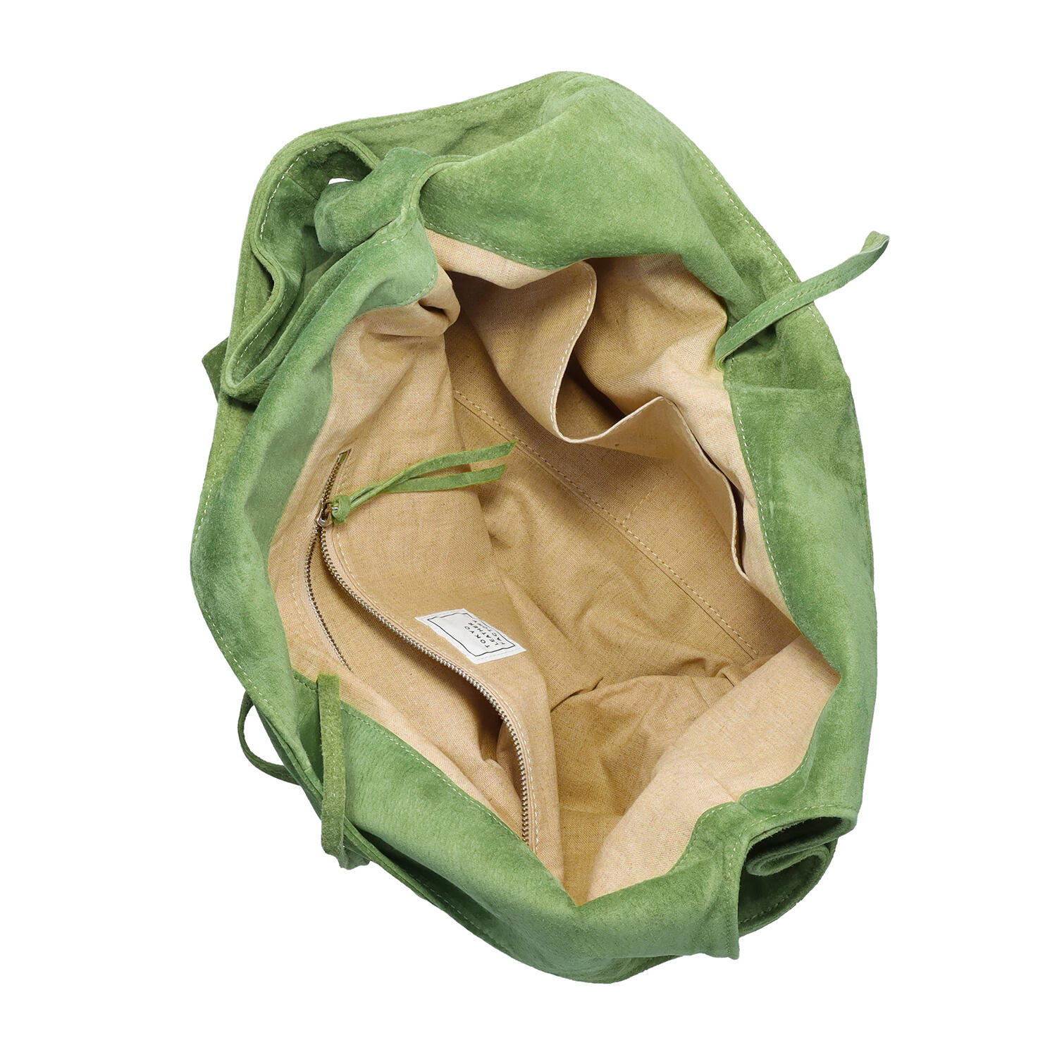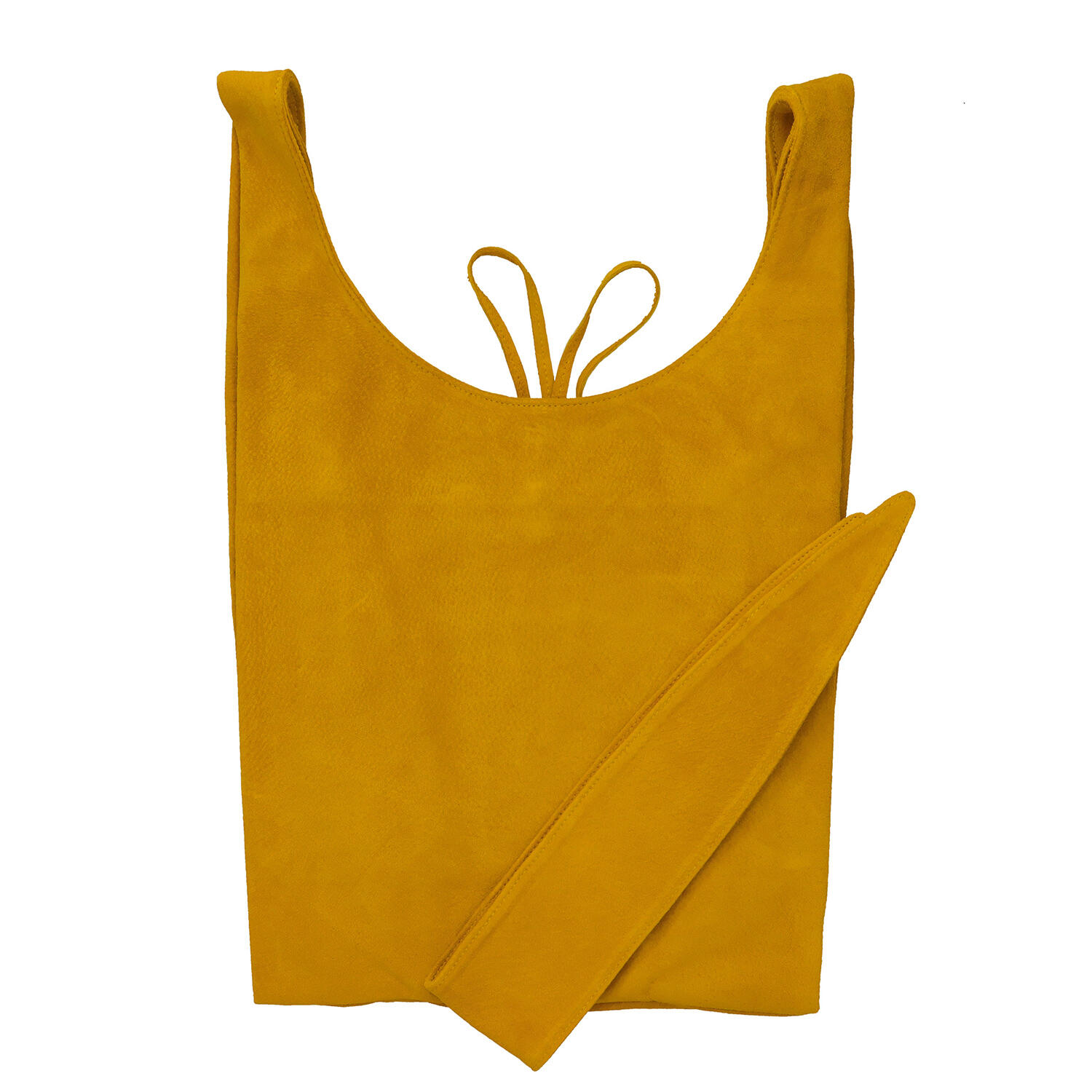 特殊な油と染料を使ってなめしと染めを施し、「手洗いができる革」として仕上げたピッグスエードのショッパー型バッグ。同素材の幅広のベルトを結べば、肩にかけられる形に変化。使わない時はバッグに結んでおくとさりげないアクセントになります。裏地もコットンと麻の混合素材で、外側の革と同じくナチュラルな風合いを帯びてきます。内側にはフリーポケットとファスナー付きポケットがあり、小さな小物も整理して入れることができます。