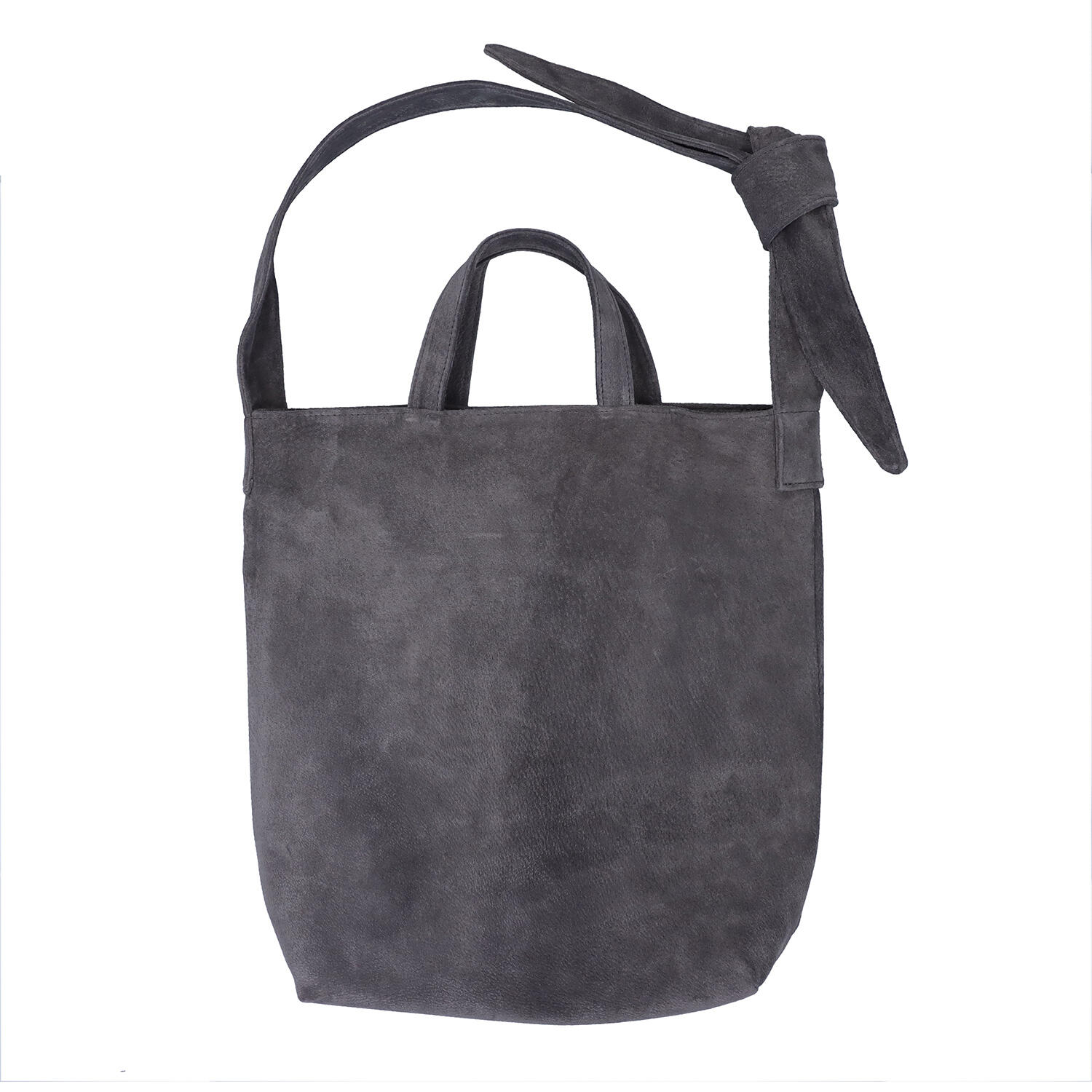 特殊な油と染料を使ってなめしと染めを施し、「手洗いができる革」として仕上げたピッグスエードの薄マチトート。ベルトを結び目で調整し、バランスをアレンジすることができます。使わない時には中にしまい、シンプルな手提型としてお使いいただけます。裏地も使い続けていくうちにナチュラルな表情が出てくるコットンと麻の混合素材。内側にはフリーポケットとファスナー付きポケットがあり、小さな小物も整理して入れることができます。