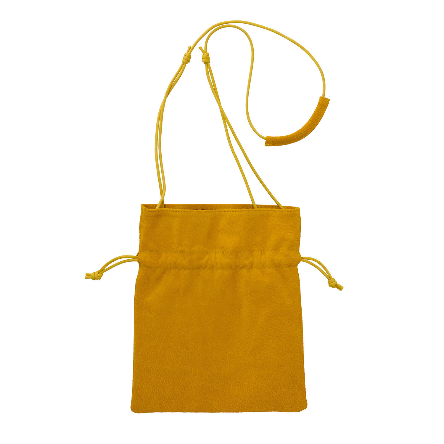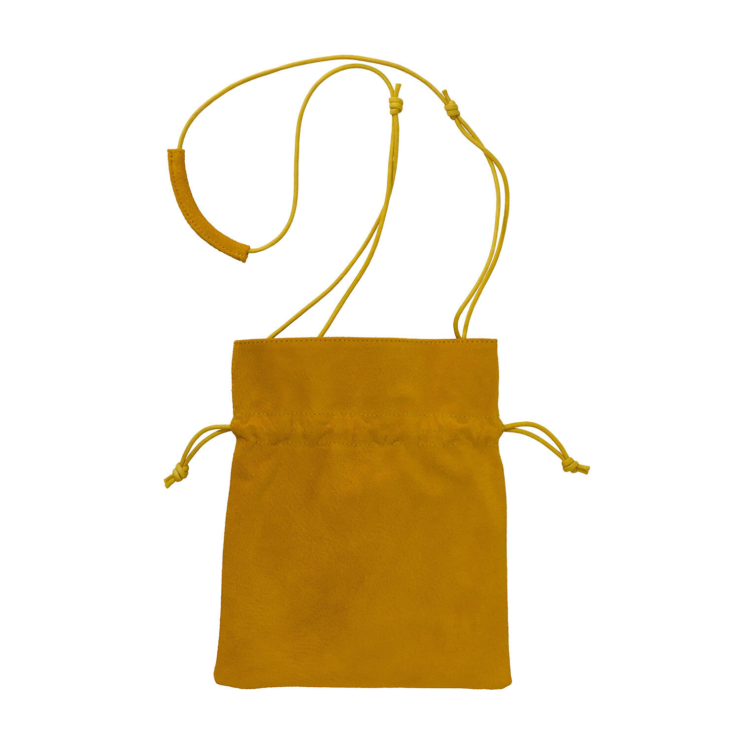 ショルダーストラップを金属製のストッパーで微調整をすることで、様々な持ち方ができる小さなバッグ。特殊な油と染料を使ってなめしと染めを施し「手洗いができる革」として仕上げたピッグスエードを使っています。丸みを持たせて巾着型にする他、平らに広げてサコッシュ風にすることもできます。コーディネイトが楽しくなる5色展開。男性へのギフトにもお勧めです。