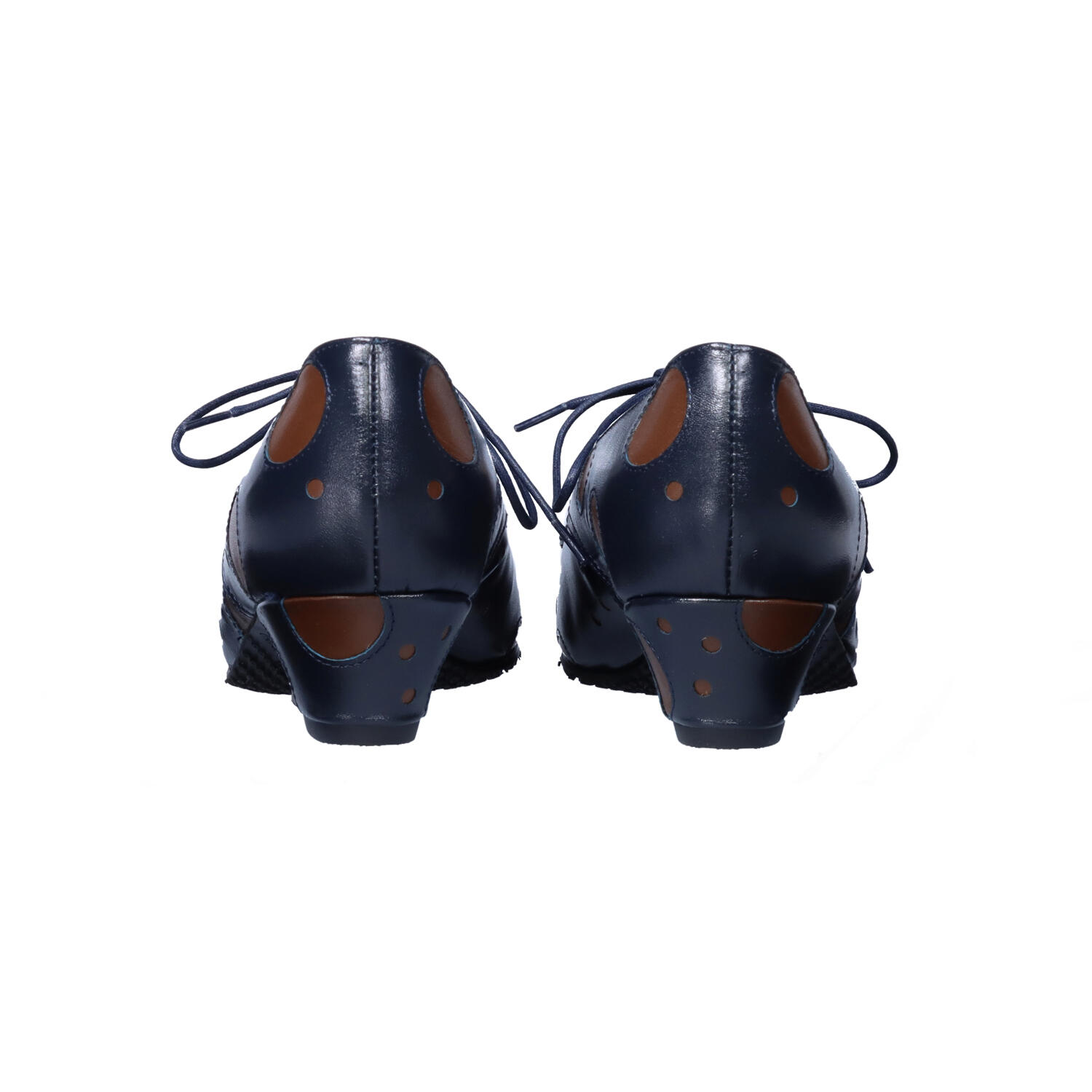 大きめドットの大胆な柄も、ネイビーとブラウンのベーシックカラーとレザーで仕上げれば思いがけない大人のかわいさに。木型は「クツネ」オリジナルの代表的な4つの木型のうちのひとつ。1,000人以上の足のサイズを測り、甲高、幅広の人が多い日本人に合わせてゆったりした幅を取り、上から見ても横から見てもすっきり見えるように設計されています。アウトソールはグリップ力の高いビブラムソールを使用。滑りにくくクッション性もある疲れにくいレースアップです。