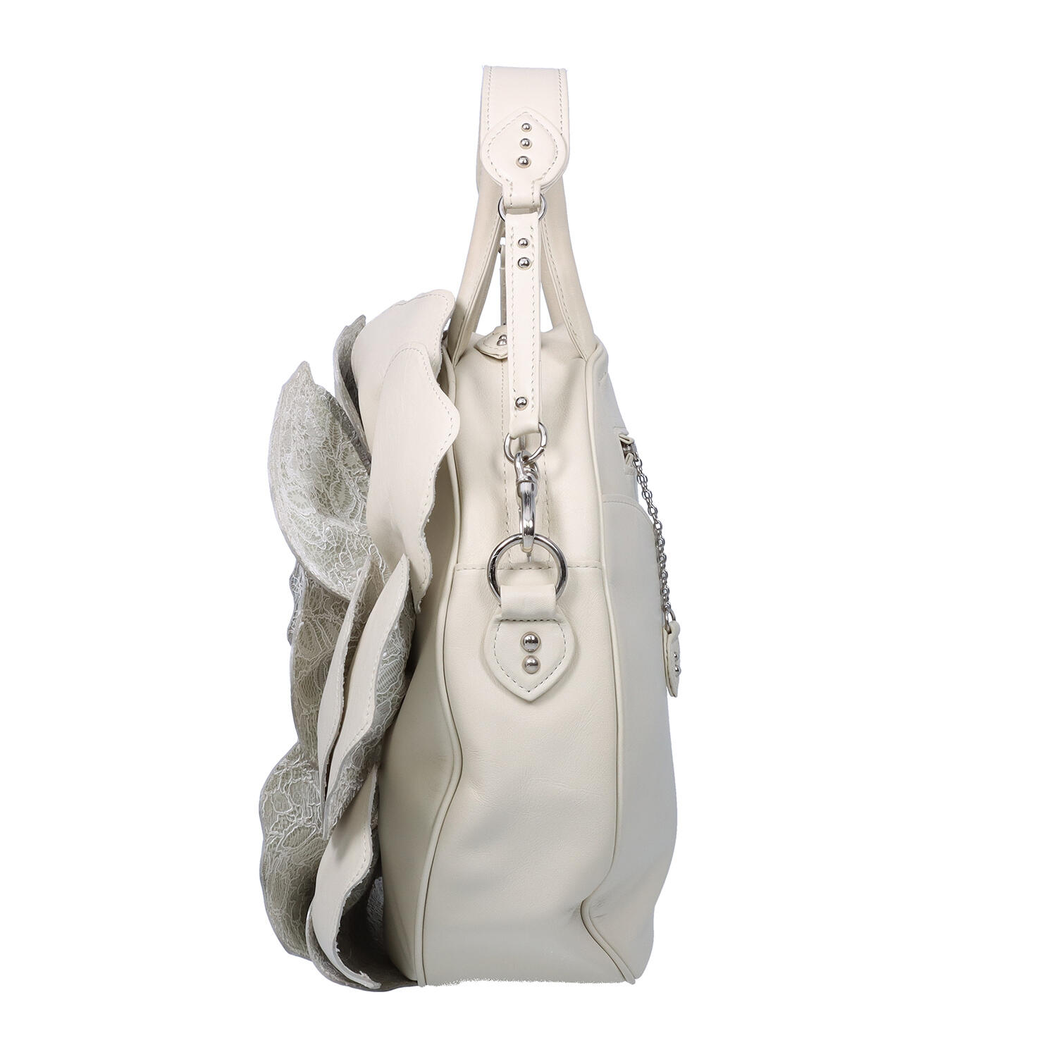 デザインだけではなく、その大きさにも目を奪われるバラのバッグ。花びらの一枚一枚をデザイナーが手で成形し、裏側にレース生地を貼ってどの角度から見ても美しい仕上がりを目指しました。ビーズやラインストーンの装飾は、女性の心の変化に寄り添う「意味」のある形。高揚感とおしゃれ心を満たしてくれる、ハンドメイドのバッグです。背面のポケットはバラのつぼみをイメージし、手に持った時も膝に置いた時も美しく見えるよう、仕様やパーツにこだわっています。