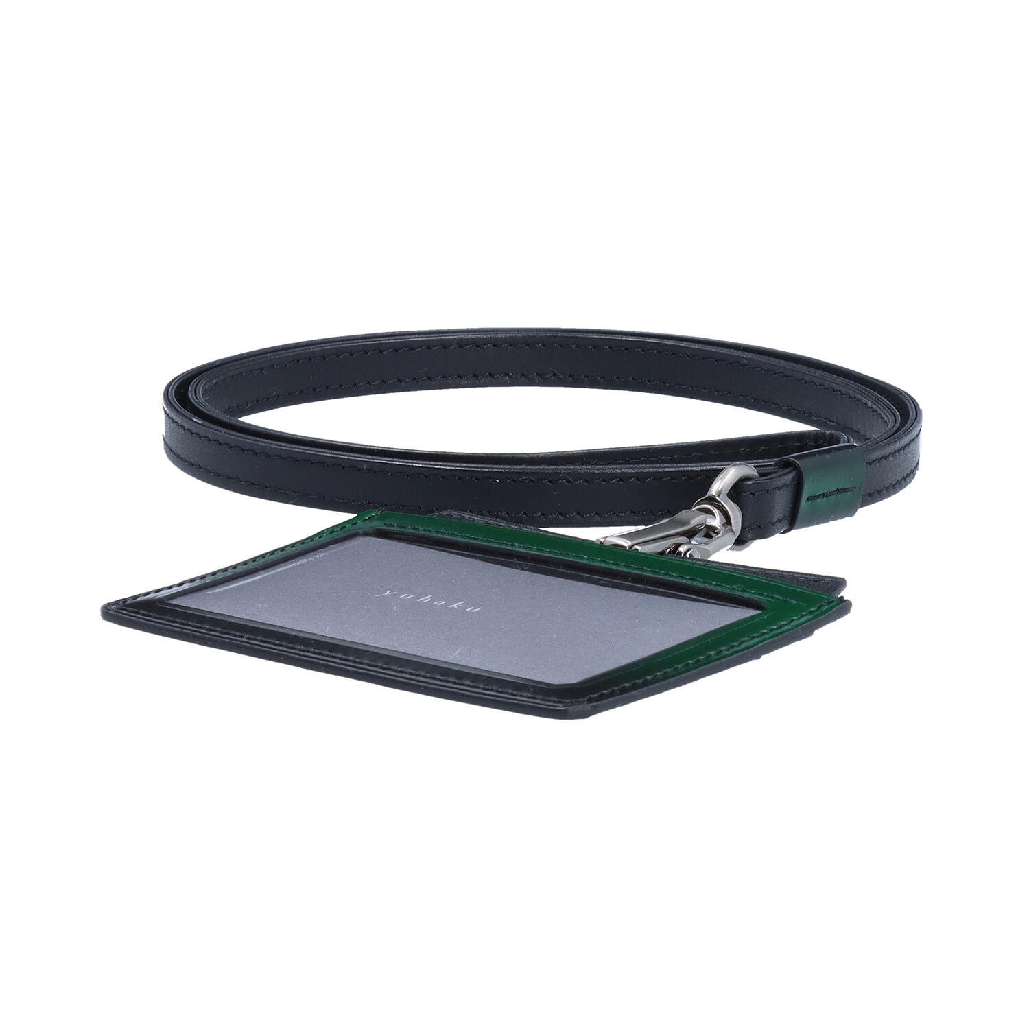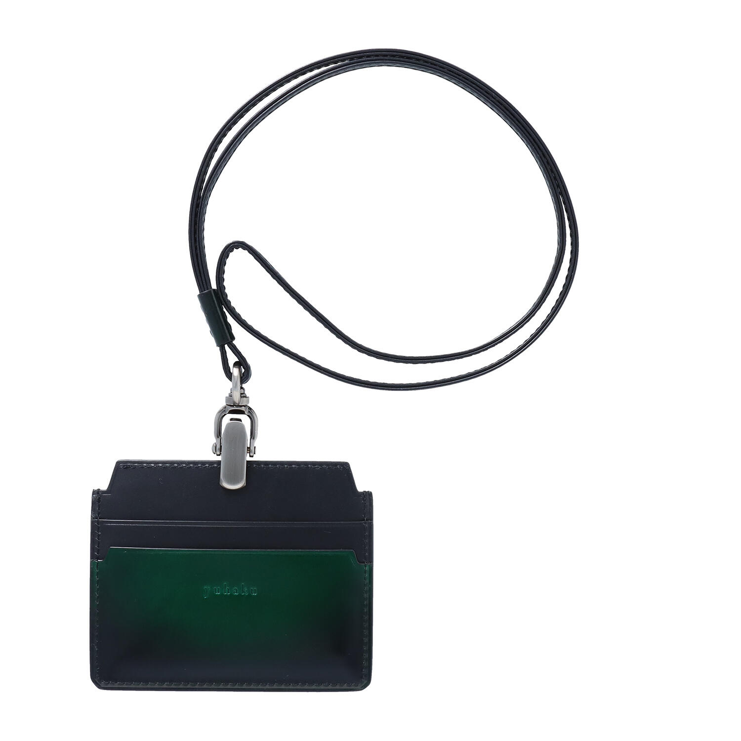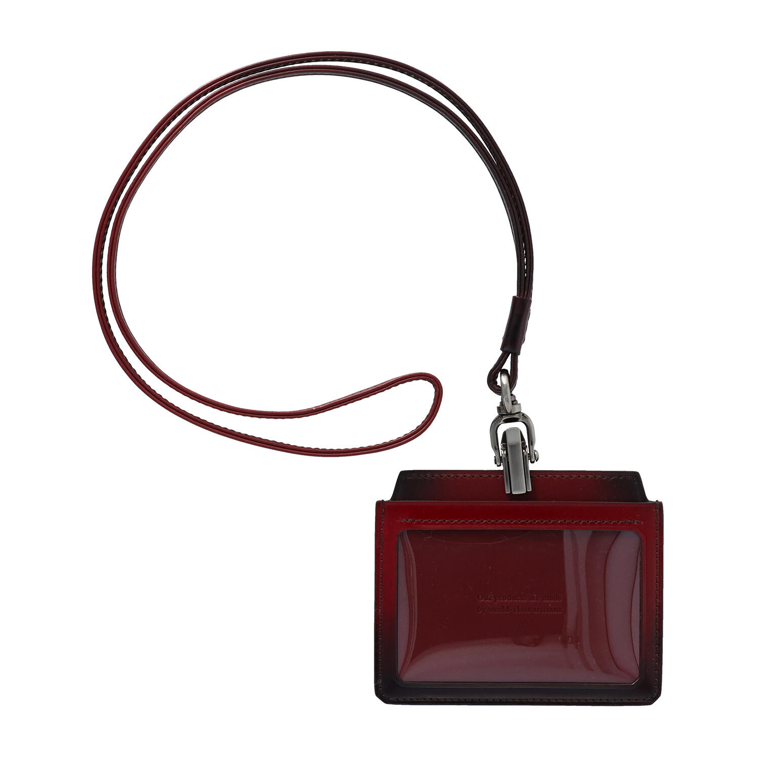 緊張感のあるジャケットスタイルにシャープな個性を添える、上品なツヤが魅力のIDケース。本体は手染めのグラデーションが施されたコードバンで、ネックストラップは牛革を使用しています。裏面にはカードを2枚入れることができる牛革製のカード段があり、ICカードなどを入れて便利にお使いいただけます。ネックストラップは首に沿い、本体はきちんと正面を向くように、機能的な金具を使っています。